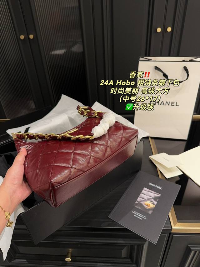 / 升级版大号 全套包装尺寸31.21 中号 全套包装尺寸26.17 小号 全套包装尺寸20.15 香奈儿 24A Hobo 粗链条腋下包 温润细腻 优雅高级 非常