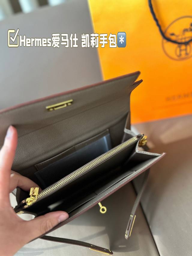 配盒牛皮 Hermes爱马仕 凯莉手包 好随意搭配 不管怎么穿随便一背都好看 一点都不挑人很显气质 超有feel 这款其实很韩风 尺寸22*13