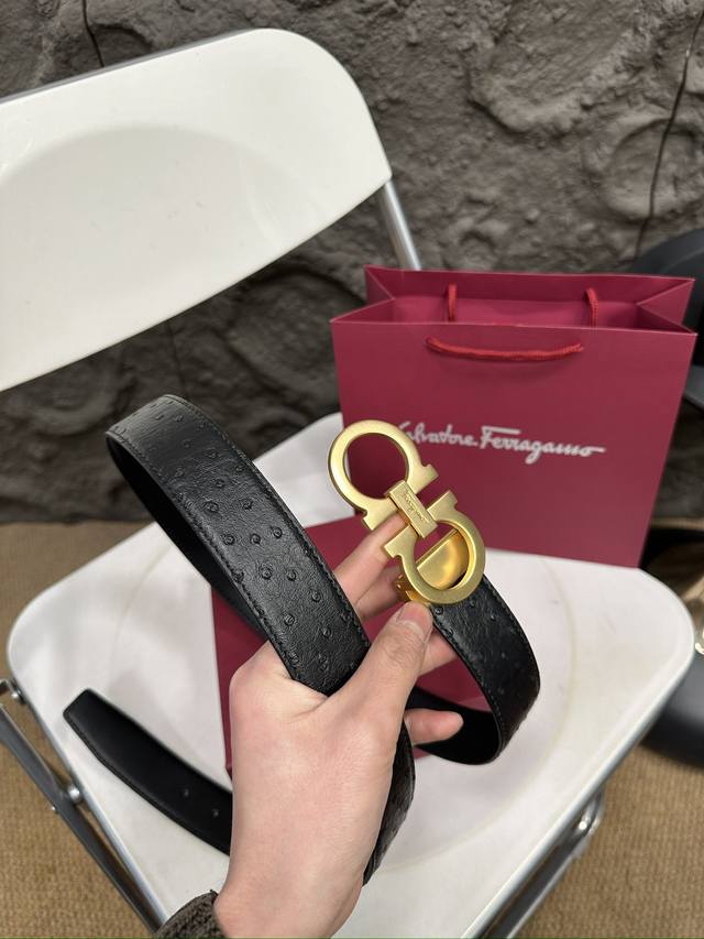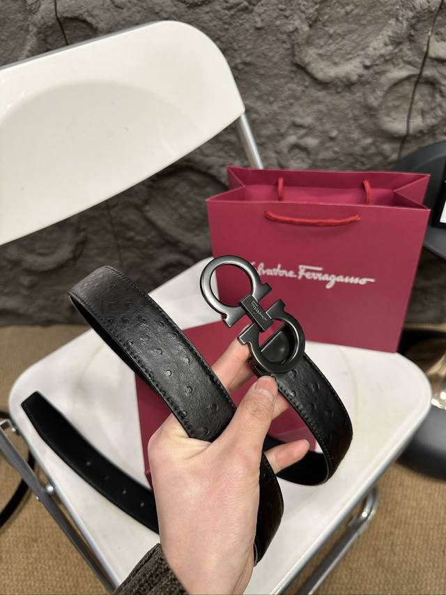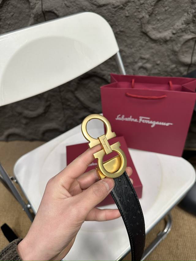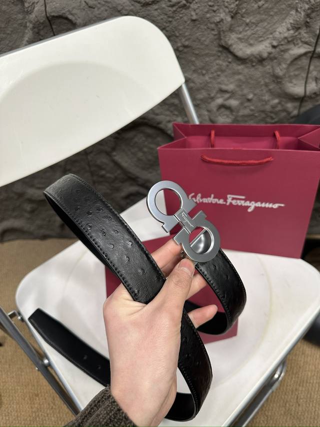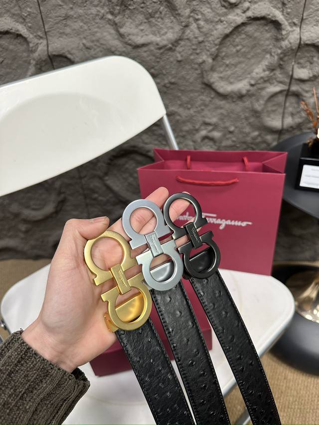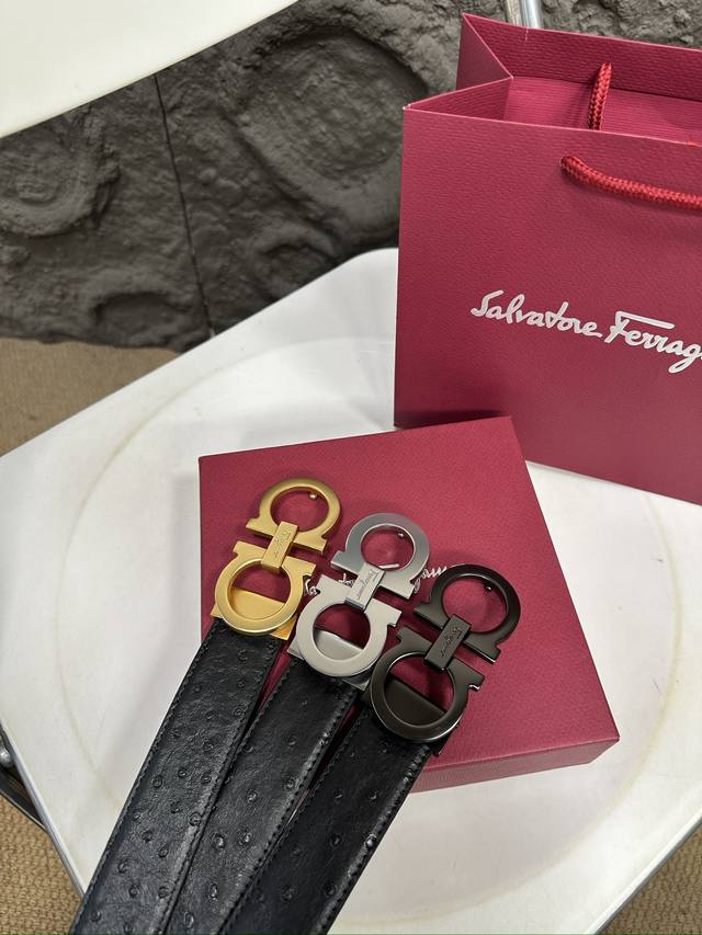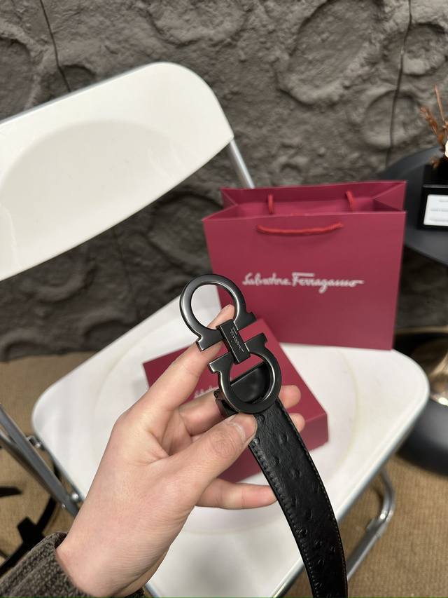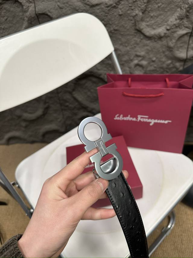 全钢带头 菲拉格慕 牛皮男士腰带皮带 宽度3.5 全套包装手提袋