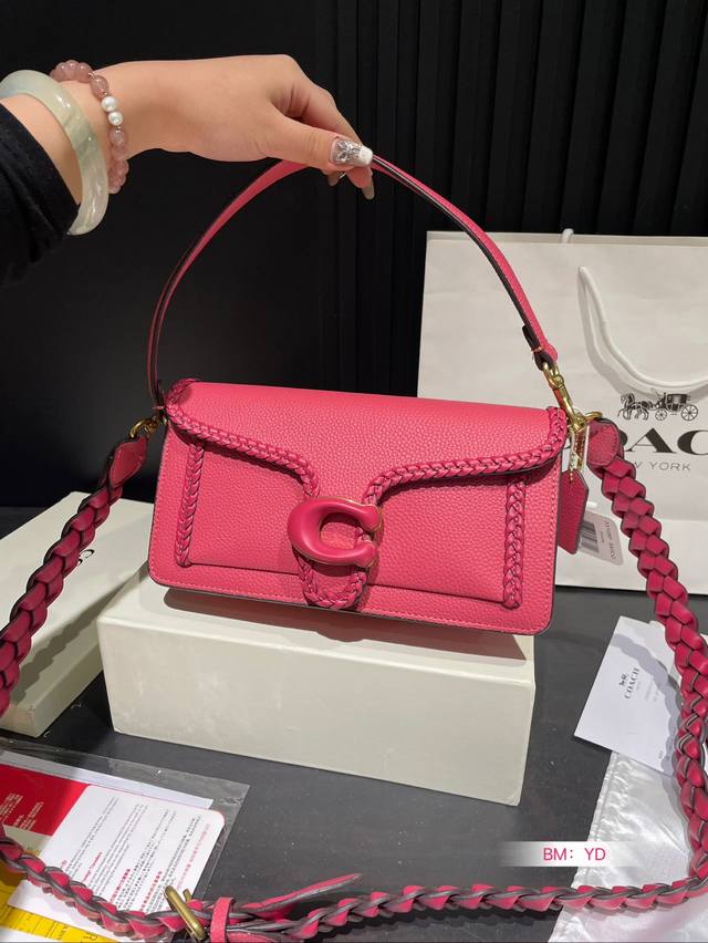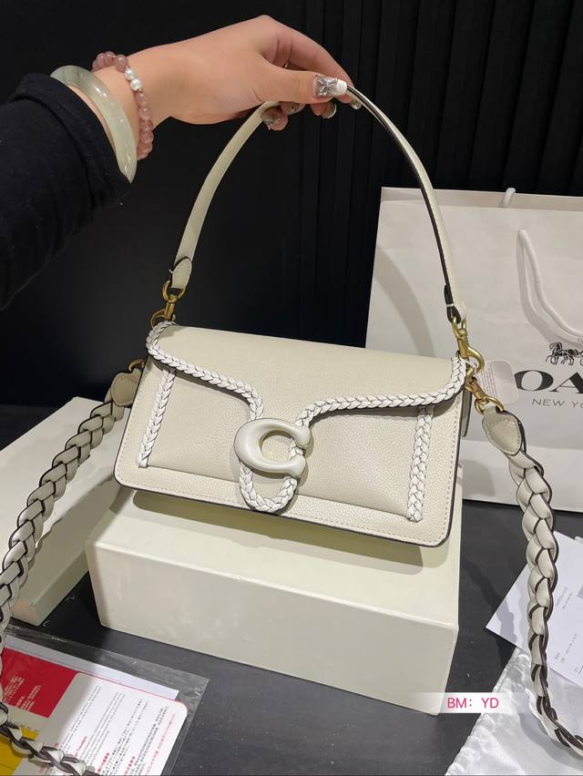 Coach 家酒神包tabby手提包单肩斜挎包。让小姐姐第一眼看到就会爱上它。被誉为平价版小酒神包的蔻驰tabby,复古又百搭,很受欢迎啊。五金扣厚实,整体精致小巧,还特别能装。每个包配一长一短两天可卸肩带,内部结构分层合理,中间一个带拉链的隔层小袋,把包分成三格,简直完美这个尺寸觉得刚刚好合适,手提单肩斜挎都没有问题的!尺寸:26*14