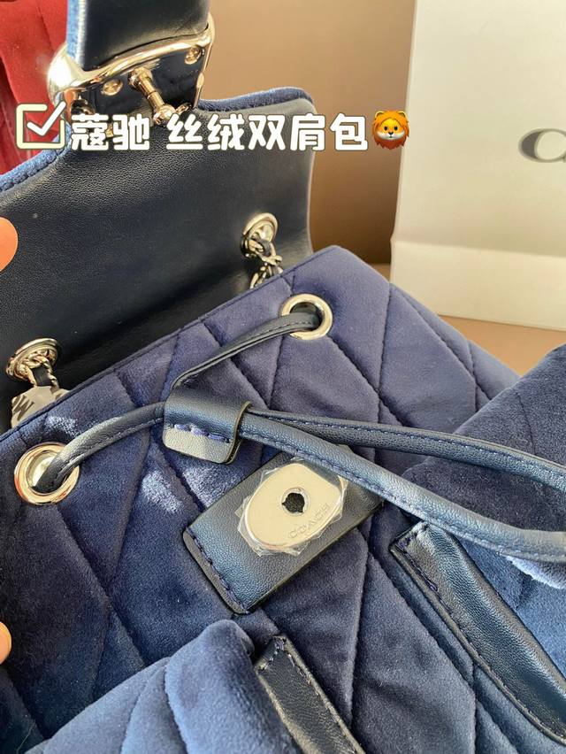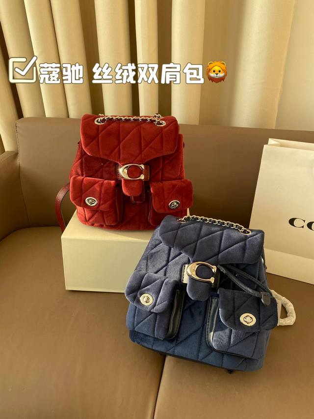 蔻驰 丝绒双肩包 Coach 轻松演绎复古时髦 包型挺阔,简约而不简单 尺寸20Cm折叠盒