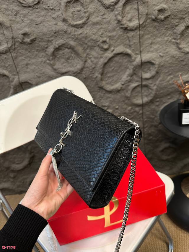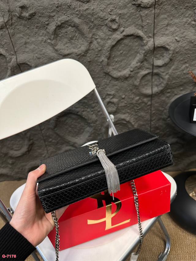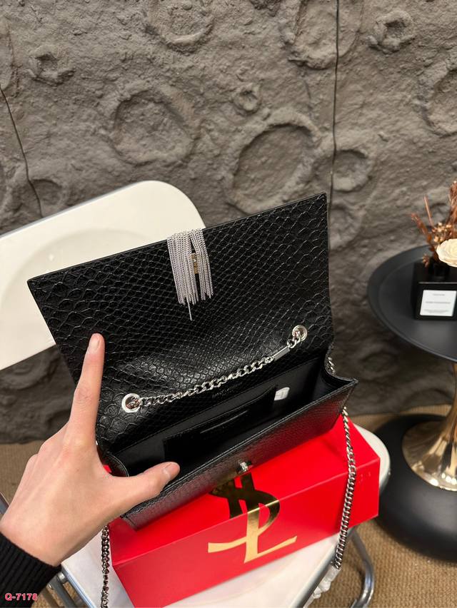 Saint Laurent先生邀请海报艺术家 Cassandre 设计,三个字母叠加在一起简约又前卫。百分百进口鳄鱼纹纹路,耐磨耐刮!绝对是永恒的经典!没有一个y家的流苏包都不敢说自己潮!尺寸24.15Cm