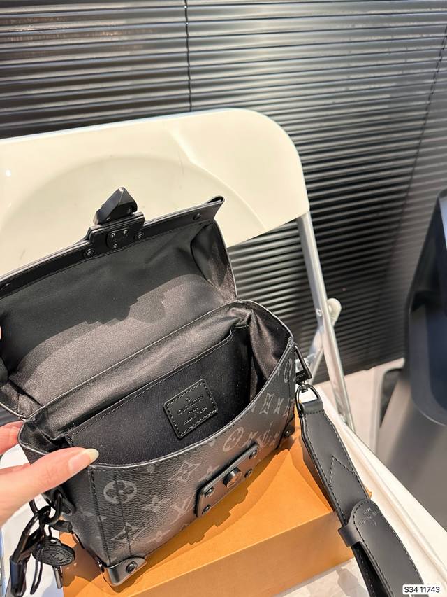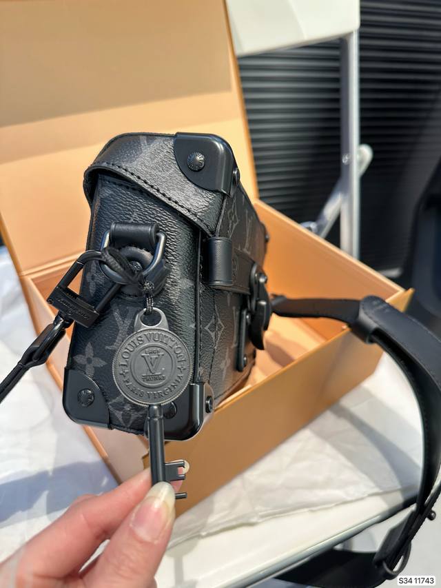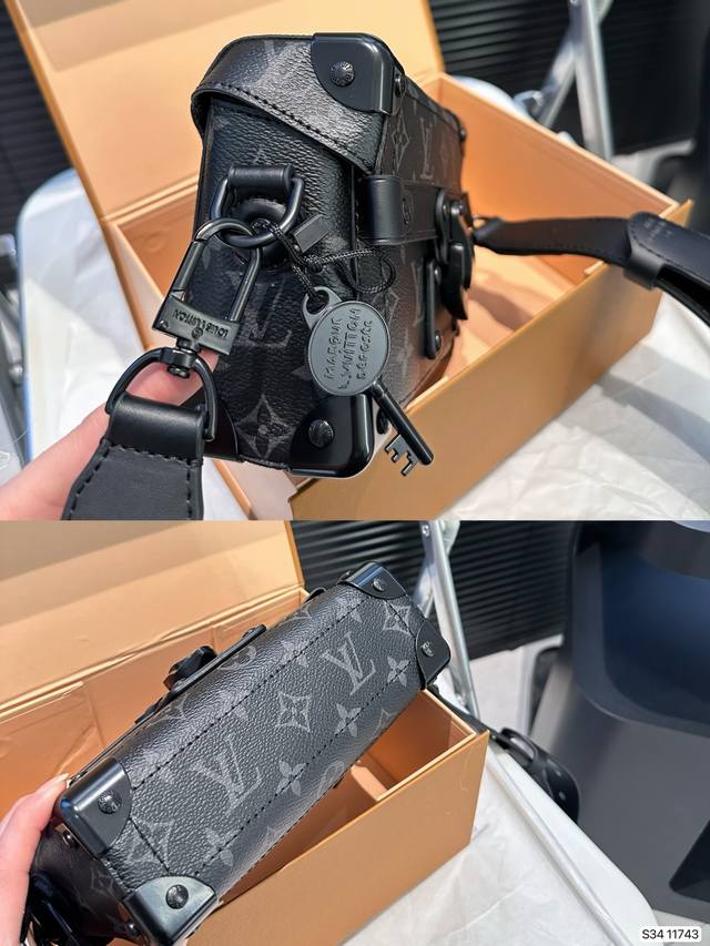 / 配折叠盒子 Lv2024新款soul Trunk男士斜挎软盒包,棱角分明搭配金属包角,演绎百年制箱传统,尽显奢华。金色链条如璀璨星辰,散发时尚气息。经典锁扣画龙