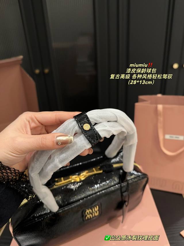 “背上这款miumiu漆皮保龄球包 无论是日常出行还是特殊场合,都能成为你造型中的亮点。快来和我一起感受这份来自miumiu的时尚魅力吧!”