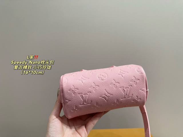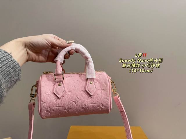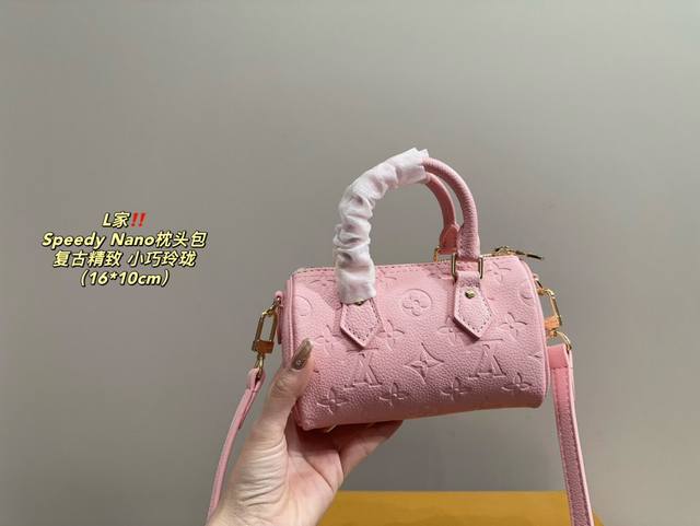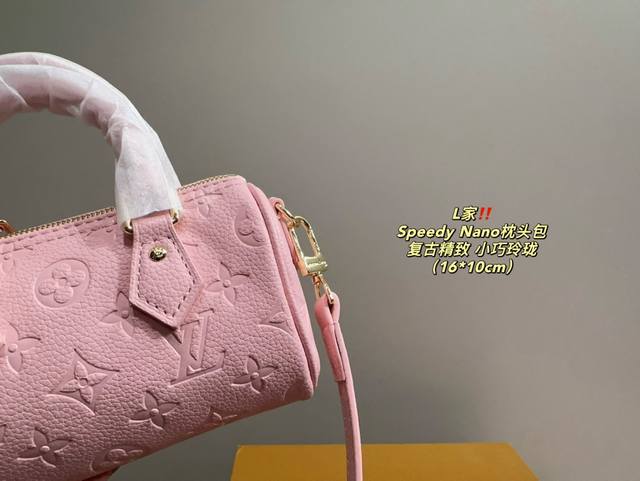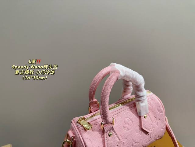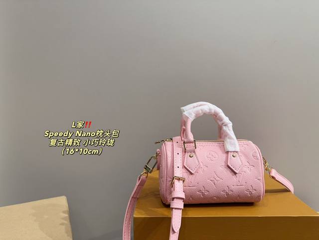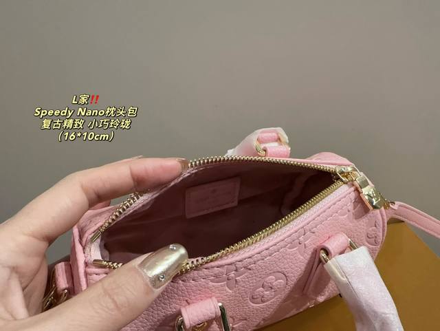 全套包装尺寸16.10 Lv Speedy Nano枕头包 Lv Speedy Nano继承了lv一贯的优雅与经典。独特的棕色配色,加上lv标志性的老花图案,既