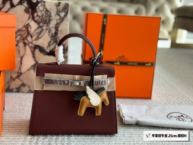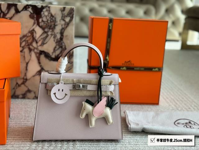 配盒 尺寸:25*20Cm H家 爱马仕 Kelly25 配丝巾+飞马 25的尺寸刚刚好! 真的太太太太好看 手掌纹牛皮 包包特别又质感!