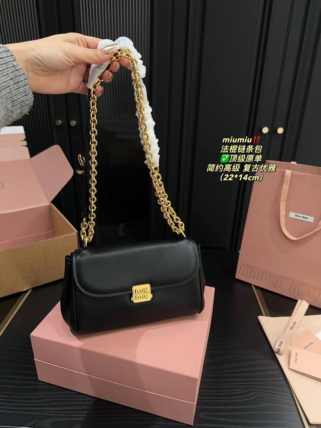 / 顶级原单 全套包装尺寸22.14 Miumiu 法棍链条包 Miu Miu女孩必备时髦包 新款腋法棍包