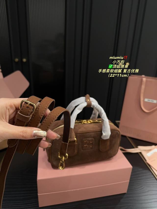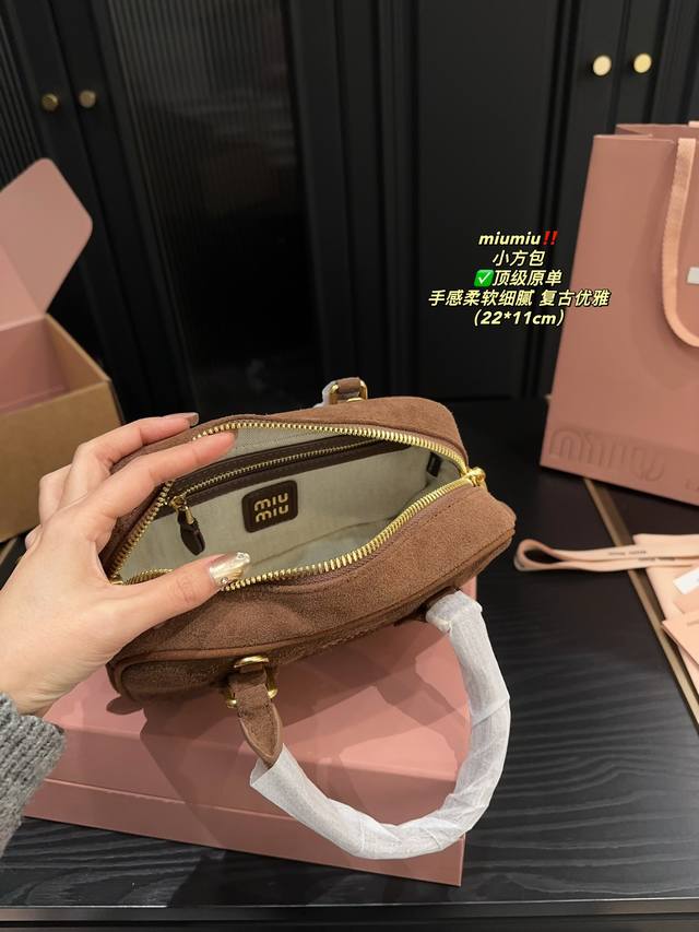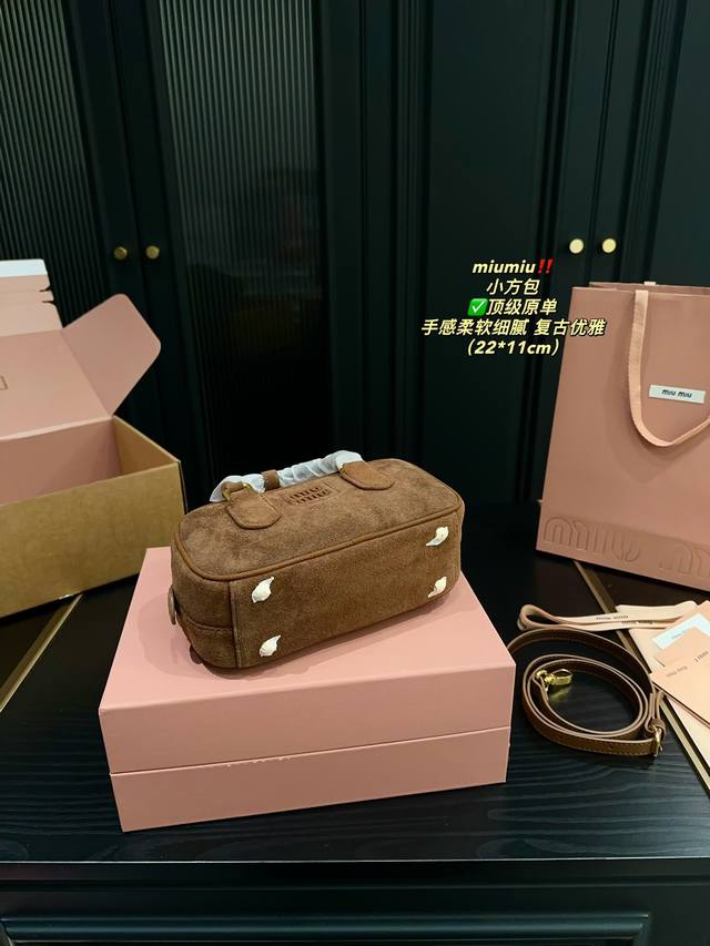 Miu 新款复古小方包 简洁利落的设计凸显功能性,柔软舒服的磨砂触感压纹浮雕的 Logo ,大气的包型设计,整体没有过多的装饰点缀,包包容量大,可作为通勤包包,满足日常需求,也可作为短途旅游的随行包,简约却不简单,各大时尚搏主几乎人手一个
