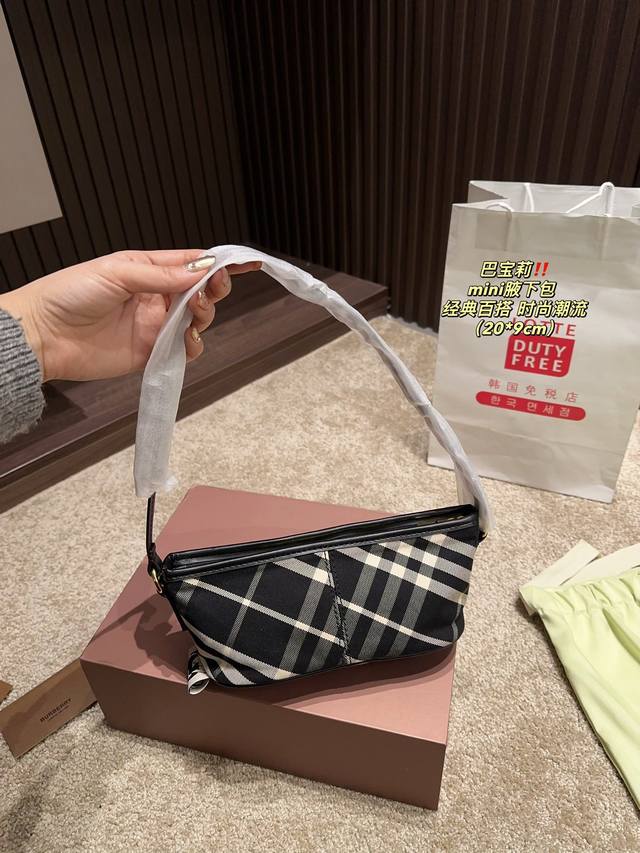 / 配盒尺寸20.9 巴宝莉 Mini腋下包 Burberry Burberry战马格纹双兜机车腋下包 超级适合出门逛街 小小的但容量很大 巴宝莉格纹永远经典 战马
