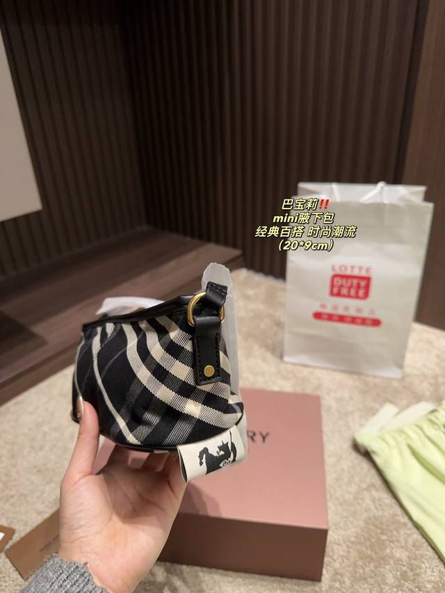 配盒尺寸20.9 巴宝莉 Mini腋下包 Burberry Burberry战马格纹双兜机车腋下包 超级适合出门逛街 小小的但容量很大 巴宝莉格纹永远经典 战马