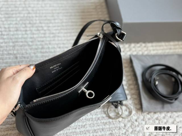 新款可以说出道即巅峰,有是一神作,重新开创- -种新的风格,慵懒塌塌的造型用在巴黎世家没有任何违和,有种桀骜不驯的感觉,皮料看起来超有质感,黑色调性沉稳不失时髦适应不同身高、不同容量,价值与实用与工艺并存,随手拎着就能融入穿搭~颜值直接出圈
