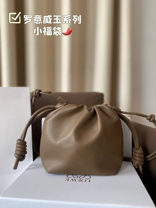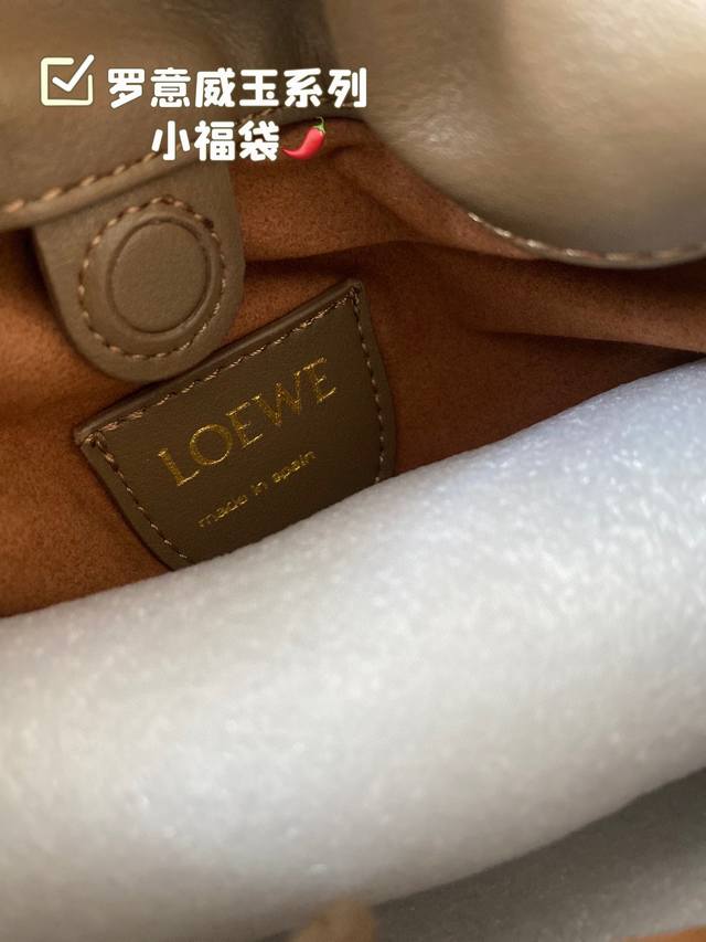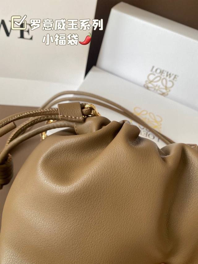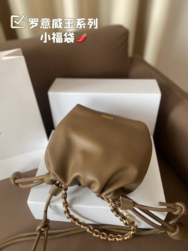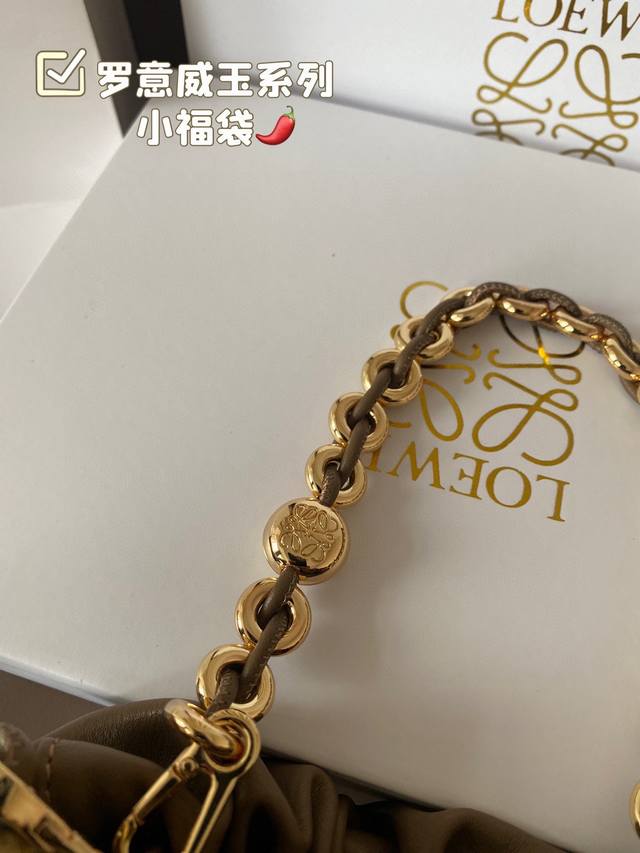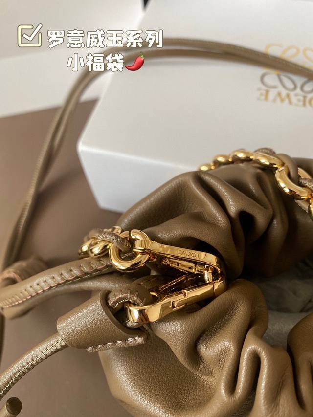 小号 配盒 Size:16×18小号 Loewe 罗意威新款福袋包 柔软褶皱的皮质 手感超好 搭配金色甜甜圈链条装饰~ 绳结绑带元素...