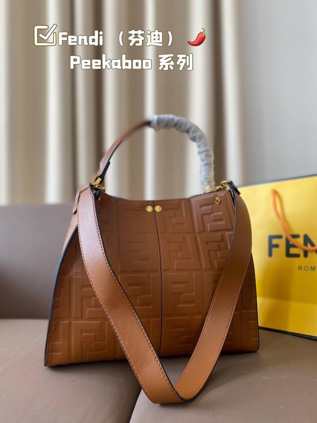 / Fendi 芬迪 88 周年之年 Fendi手袋 质感光滑 明线剪裁修饰 Peekaboo转锁开合 硬隔板并设有一个拉链口袋 单手柄 镀钯饰面金属配饰 镌刻fe