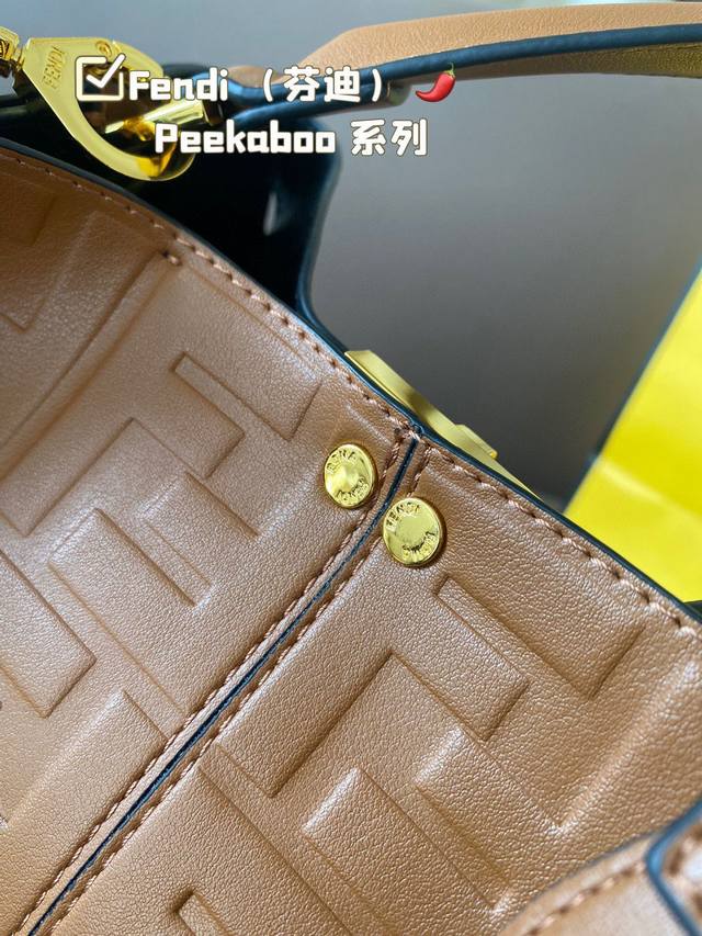 Fendi 芬迪 88 周年之年 Fendi手袋 质感光滑 明线剪裁修饰 Peekaboo转锁开合 硬隔板并设有一个拉链口袋 单手柄 镀钯饰面金属配饰 镌刻fe