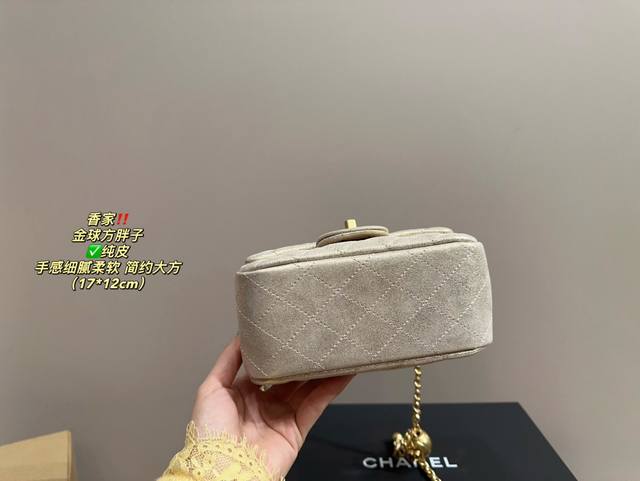 肩带尾端呢带个小金球,链条可以调节,小个子也可以背噢。包包可手拿、斜挎、单肩,背法挺多样的。包身真的好轻!!!不用担心会勒肩膀那些问题,而且相对于牛皮,手感更加细腻柔软噢。这款包包简约又大方,无论逛街、上班它都很适合。方胖子虽然比较小巧,但是手机、口红、钥匙这些呀都是能装下的,装日常用品不是问题呦