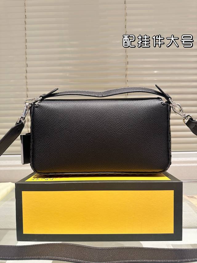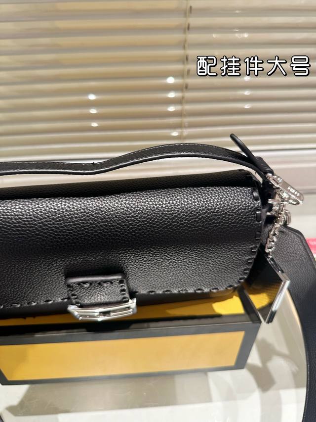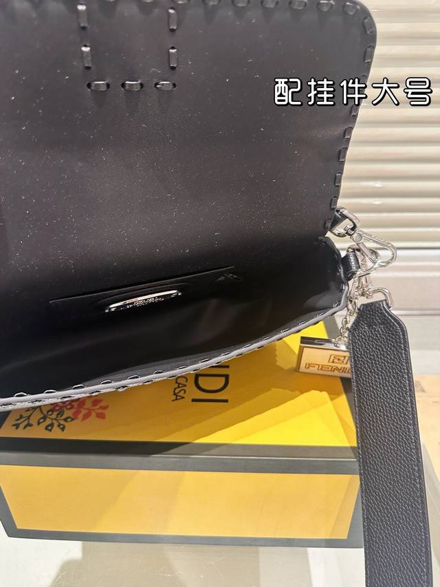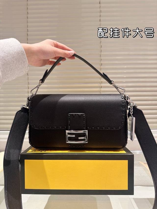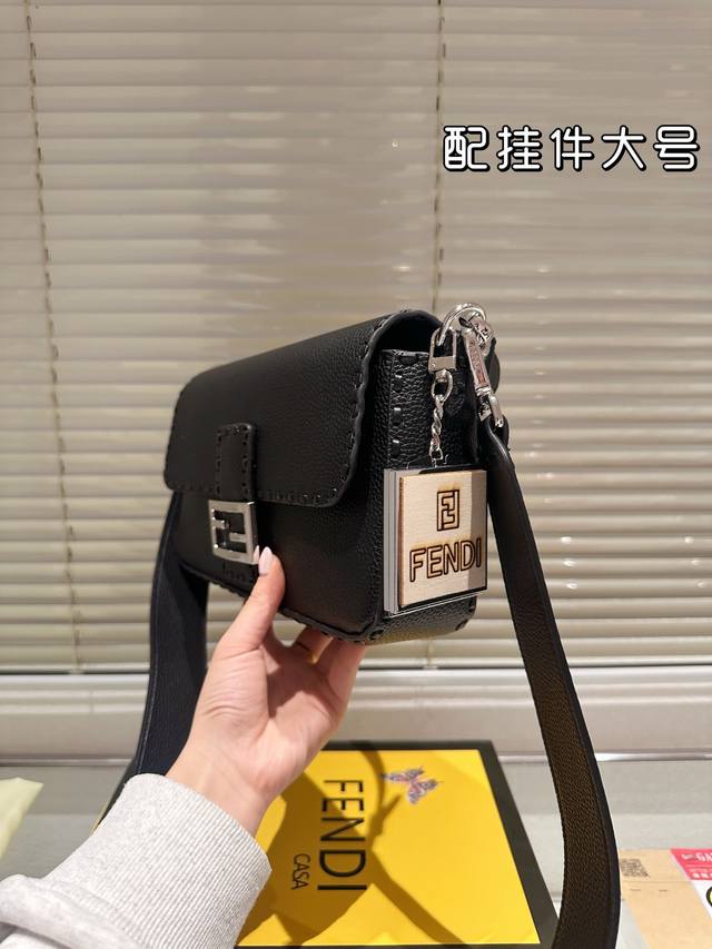 Fendi Baguette法棍包中号第一眼就觉得砸中了我。加上中号有一根较长的肩带,非常实用。中号的装两个手机,钱包,钥匙,墨镜,口红,粉饼都毫无压力。看起来虽然不算太大但是绝对很能装。尺寸27.16Cm