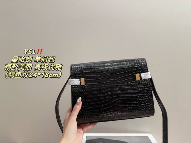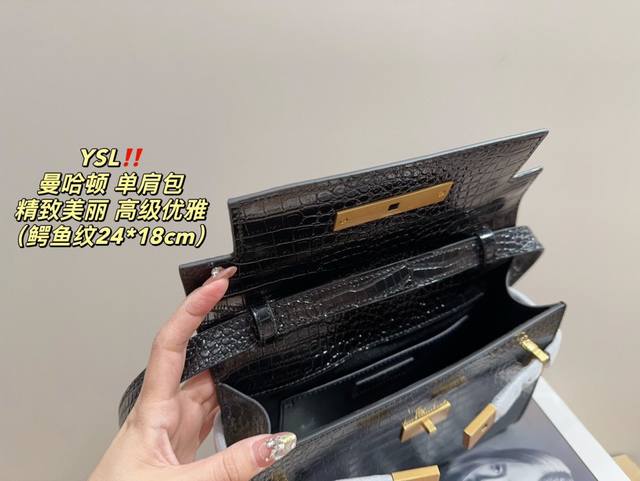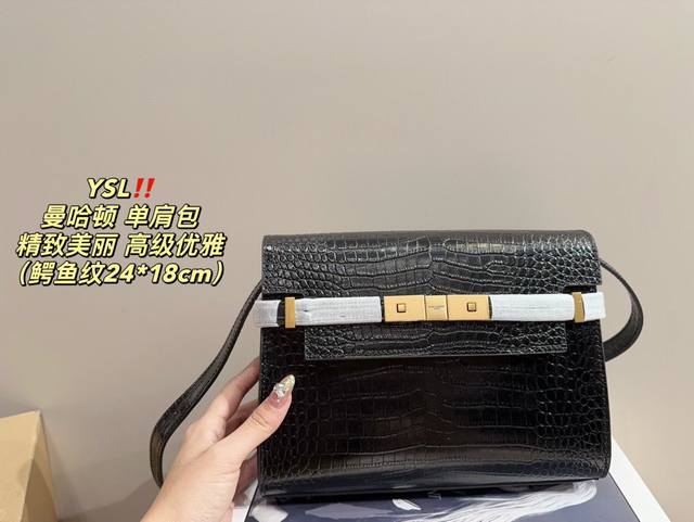 / 全套包装尺寸24.18 圣罗兰 曼哈顿单肩包 鳄鱼纹 精致美丽 高级优雅 很好驾驭,不挑衣服,不挑季节 一年四季都可,可盐可甜 高个子小姐姐背,气质御姐范 小个