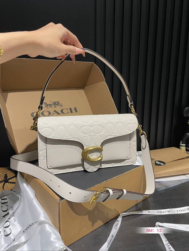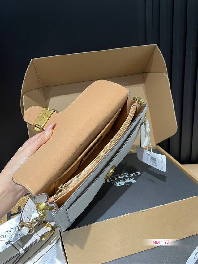 Coach 家酒神包tabby手提包单肩斜挎包。让小姐姐第一眼看到就会爱上它。被誉为平价版小酒神包的蔻驰tabby,复古又百搭,很受欢迎啊。五金扣厚实,整体精致小巧,还特别能装。每个包配一长一短两天可卸肩带,内部结构分层合理,中间一个带拉链的隔层小袋,把包分成三格,简直完美这个尺寸觉得刚刚好合适,手提单肩斜挎都没有问题的!尺寸:26*14