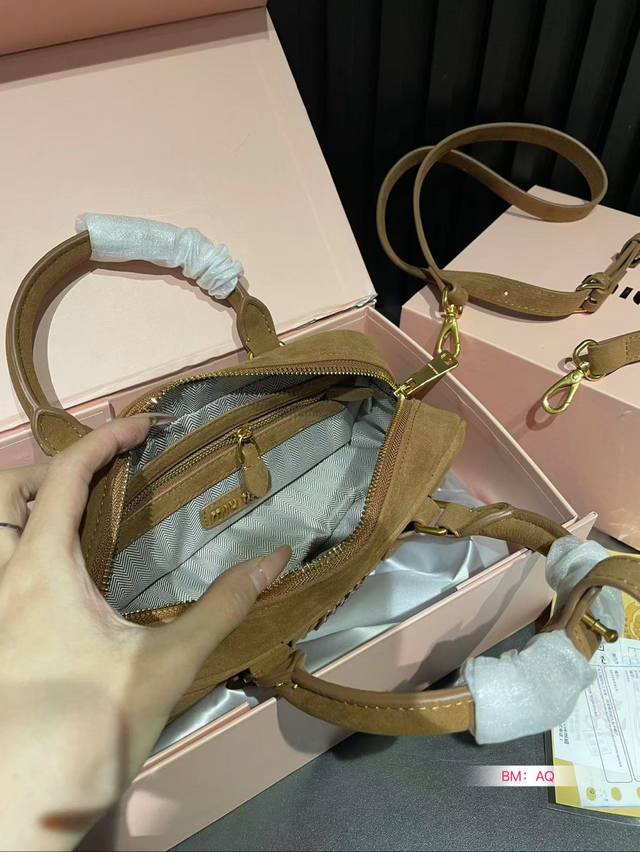 中 羊皮 miu新品 高级褶皱保龄球包 搭配小零钱包 精致独特的设计 时尚绝美 大方且与众不同 d-383尺寸20 11 23 12 28 13折叠盒