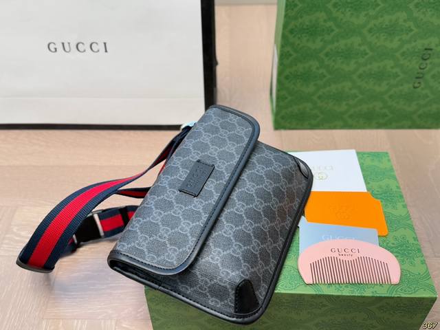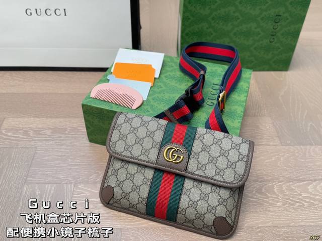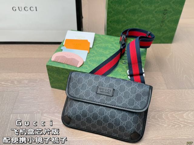 乌木色 黑色 飞机盒芯片版配便携小镜子梳子 Gucci酷奇胸包腰包 男女同款 最新系列 复古韵味特别浓对版肩带 原版内里 上身效果超赞。尺寸24 17
