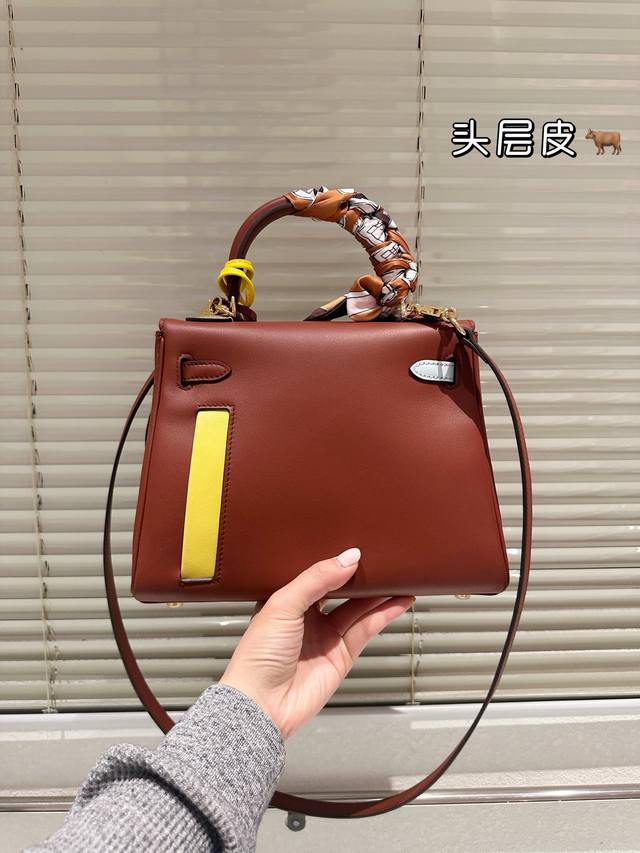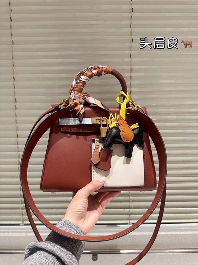 头层牛皮 Hermès 爱马仕 凯莉包 高端质量 专柜最新款进口荔枝纹 明星同款 原版质量 ,Hermès每个女孩的必备品 尺寸25Cm