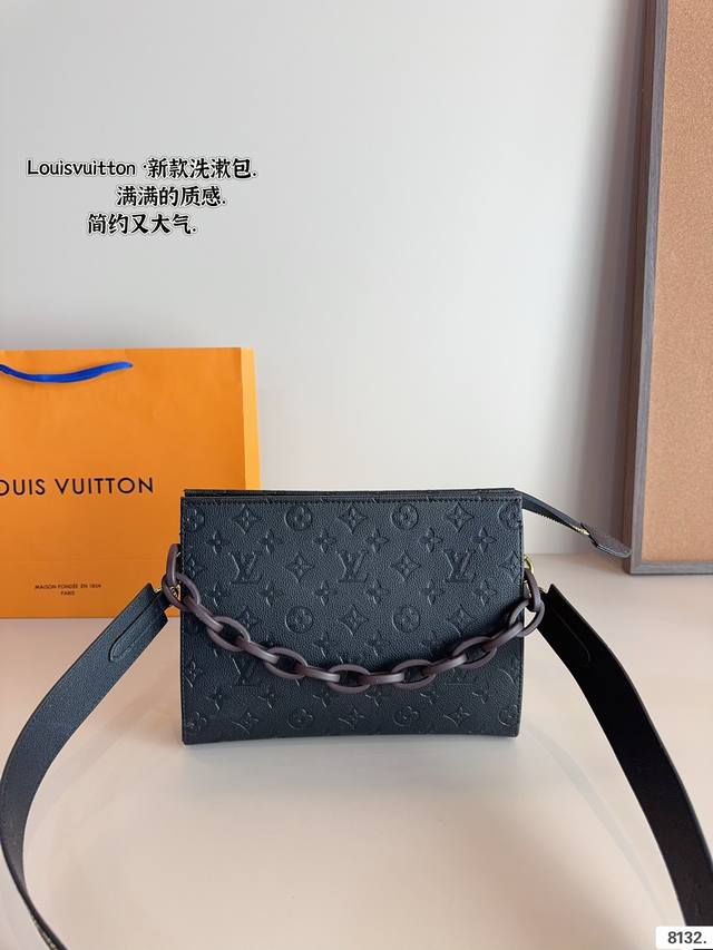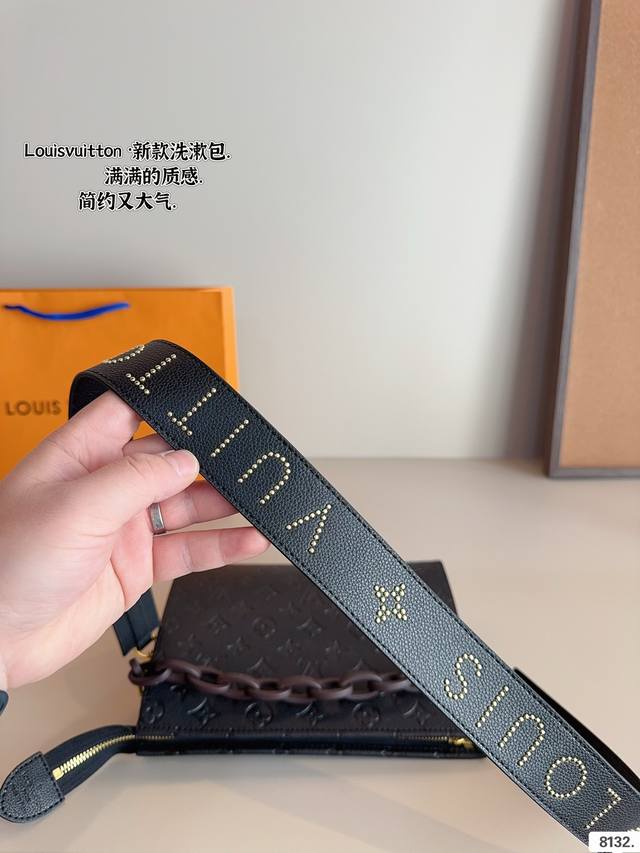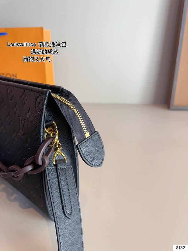 Lv洗漱包 新品 多用款 其实包包本身是个洗漱袋化妆包 被拿来用做手包 一般的手包都是扁扁的 但是这款手包底部是宽的 虽说是个手包 但能放很多东西进去 而且不变