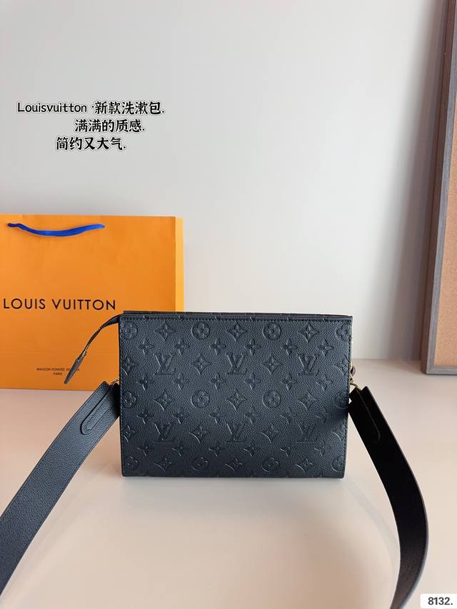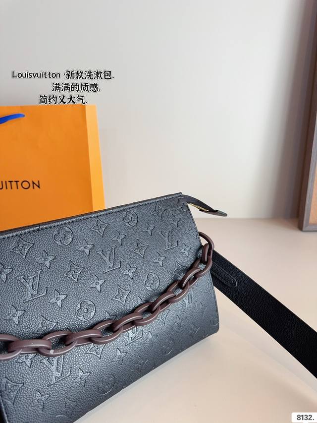 Lv洗漱包 新品 多用款 其实包包本身是个洗漱袋化妆包 被拿来用做手包 一般的手包都是扁扁的 但是这款手包底部是宽的 虽说是个手包 但能放很多东西进去 而且不变形 拿在手上非常有型 火爆的不行不行的 真的很经典 尺寸:27*6*20Cm