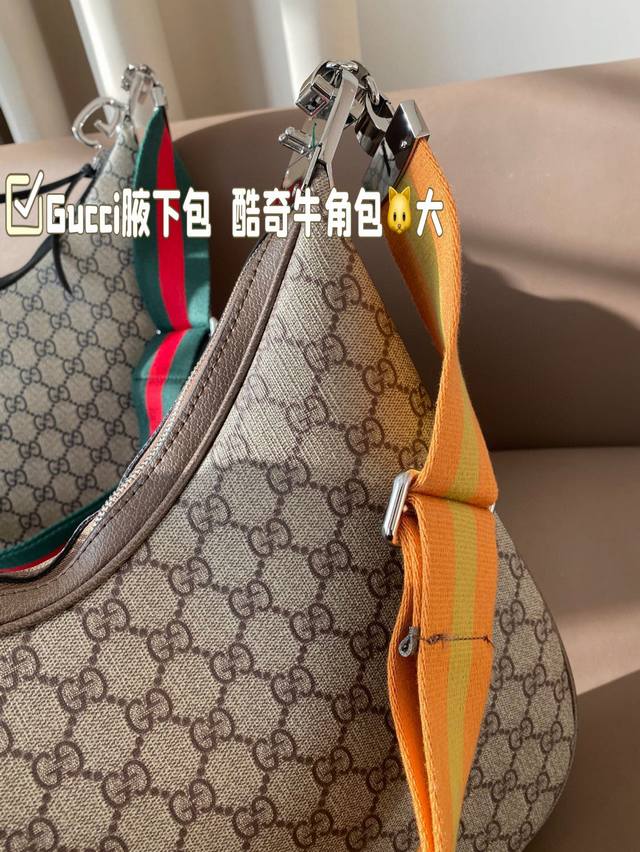 大号 Gucci腋下包 酷奇牛角包 Attache幸运牛角包 正品打版!细节超完美! 尺寸34*20 折叠盒