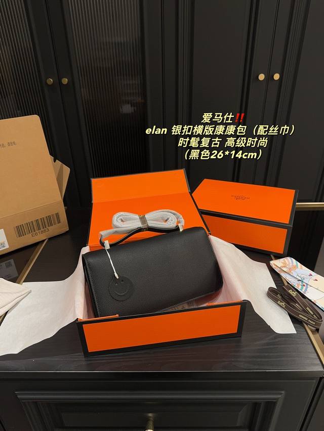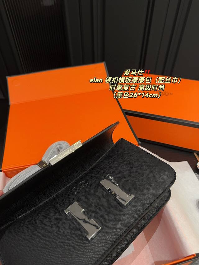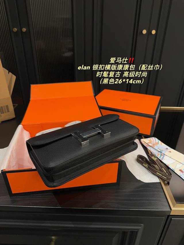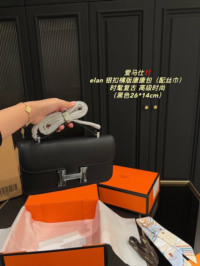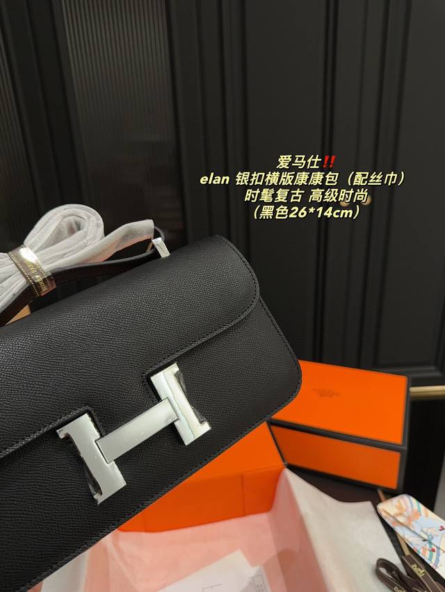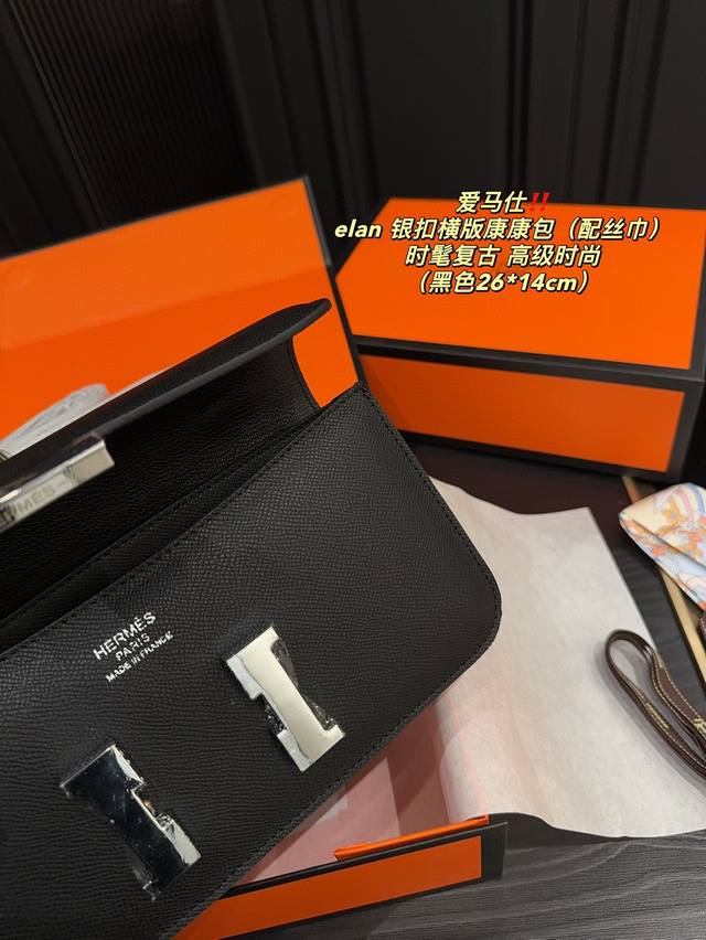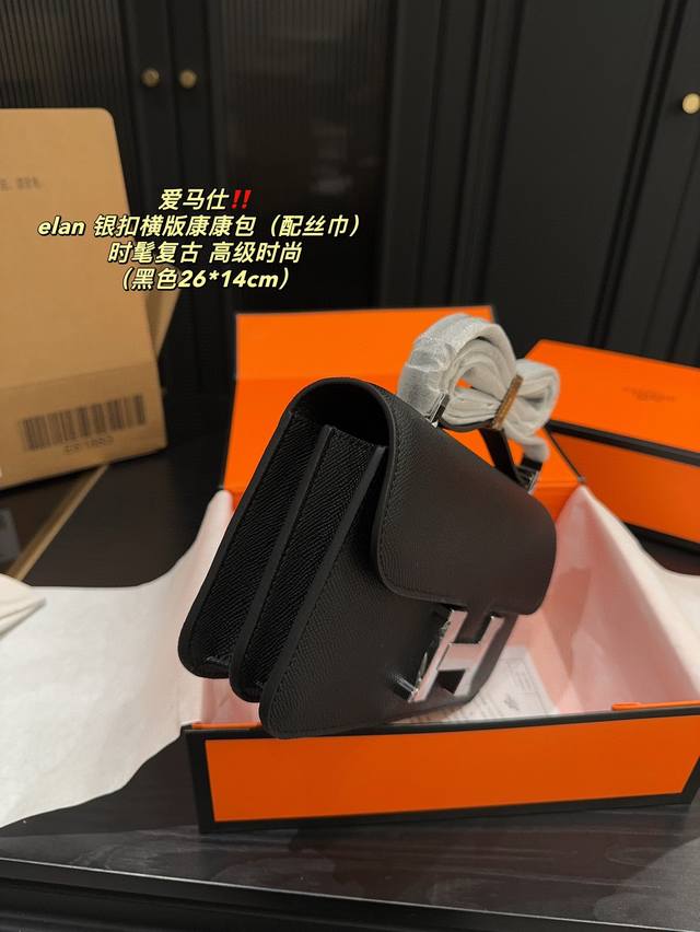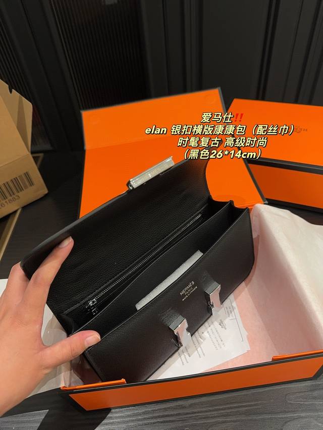 / 全套包装尺寸26.14 爱马仕 Elan 银扣新版横款康康包 配丝巾 舒适与精致并存 简洁大方 却又不失小心机 轻松朾造优雅通勤穿搭