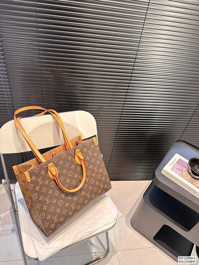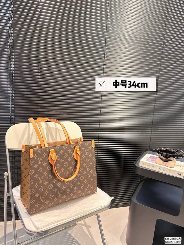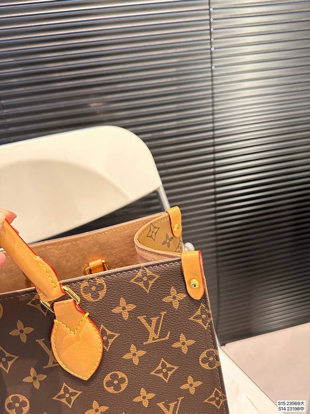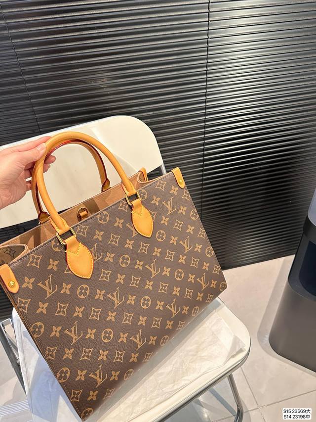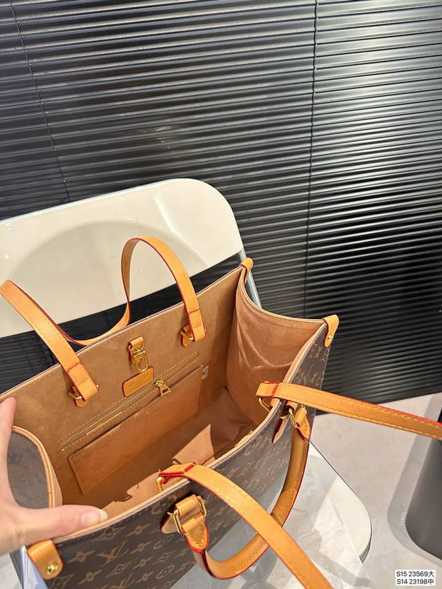 / 大号 中号 Lv托特 托特 超火的tote托特包,日常通勤都非常可会越用越喜欢的一款,值得入手。尺寸:大号41.5 32 中号34 27 货号大23569 中2