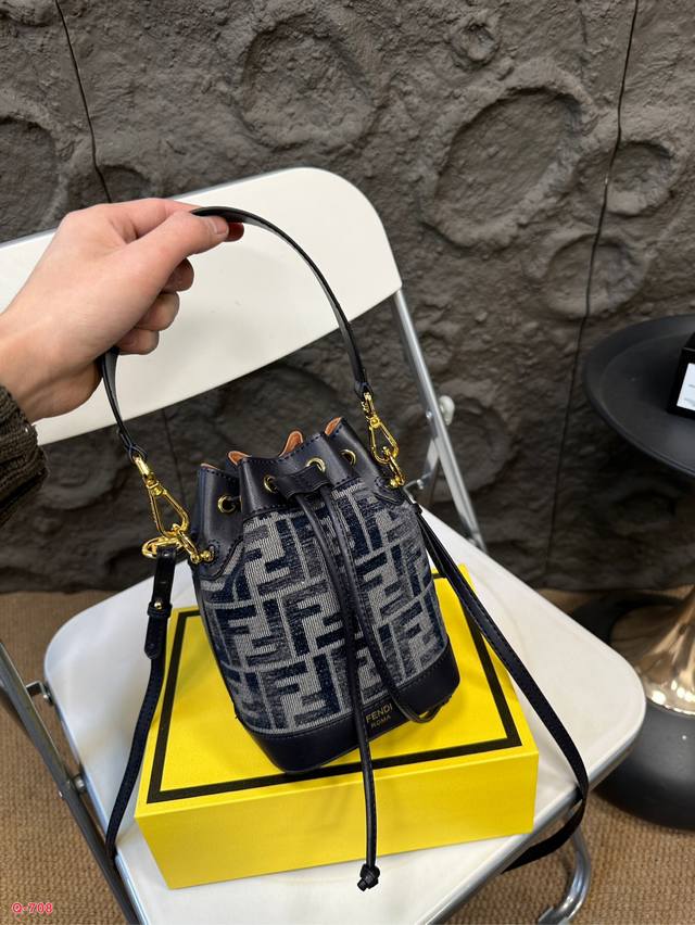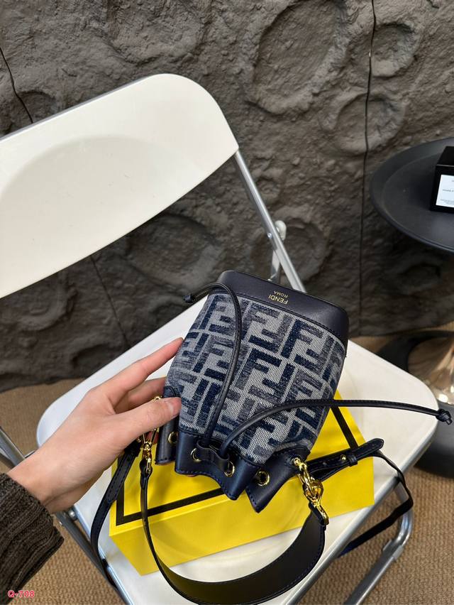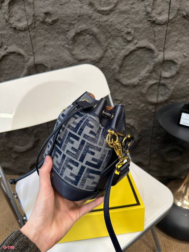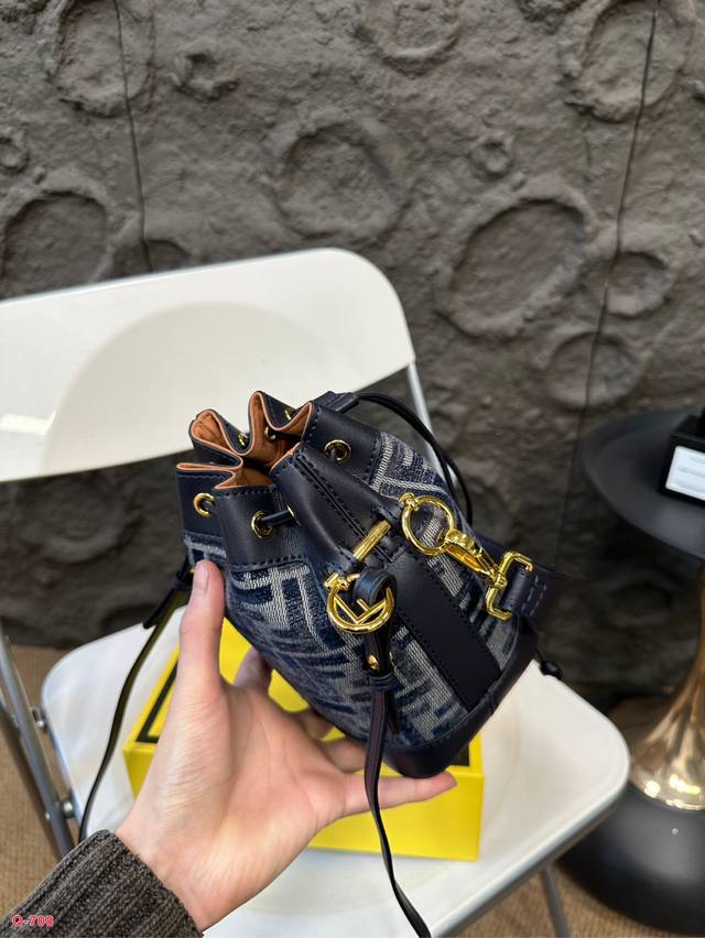 折叠盒 尺寸13.18Cm 芬迪水桶包 深蓝老花系列 秋冬新色一定要入的! 颜色真的好美呀!元气满满!