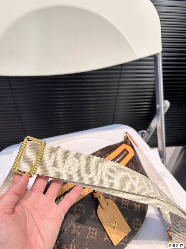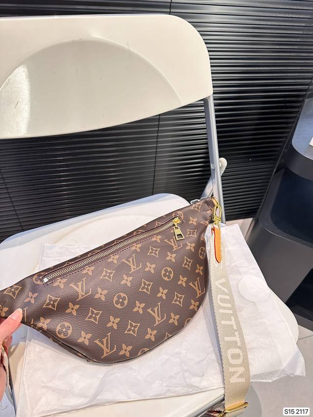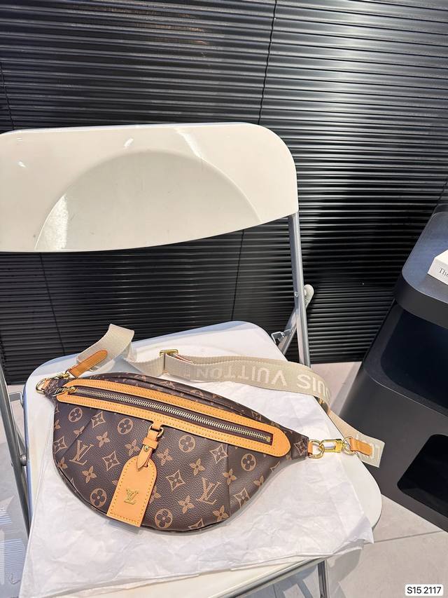 / Lv 胸包腰包,配有可调节的包带,既可环于腰间,也可肩背或随性地挂在胸前。正面和背面配有拉链口袋,方便存取 手机、卡片和钥匙。尺寸:38 18 货号2117