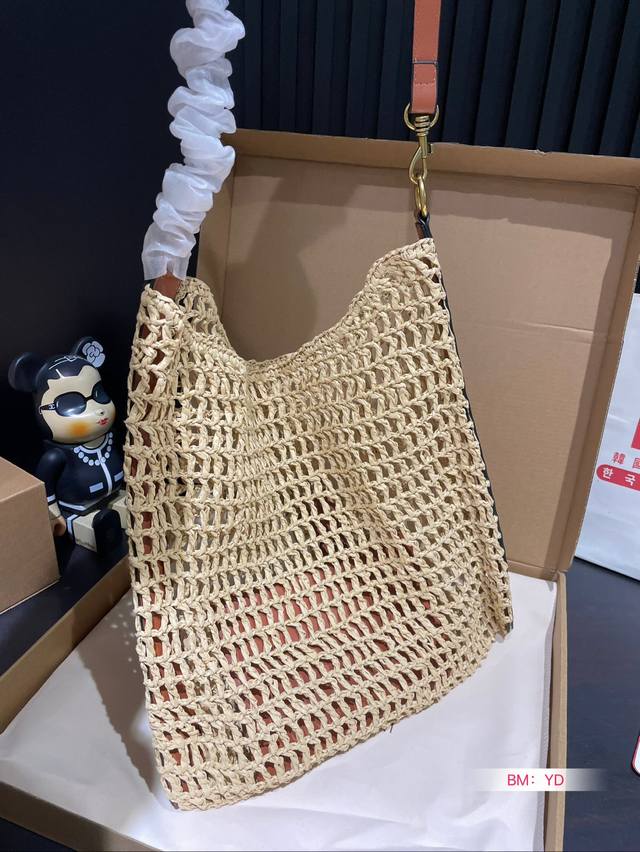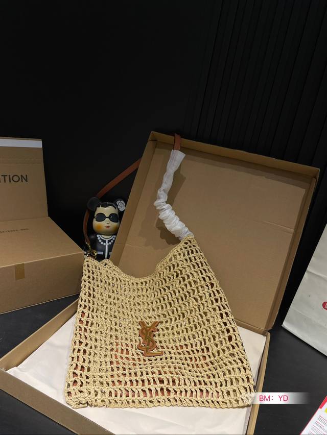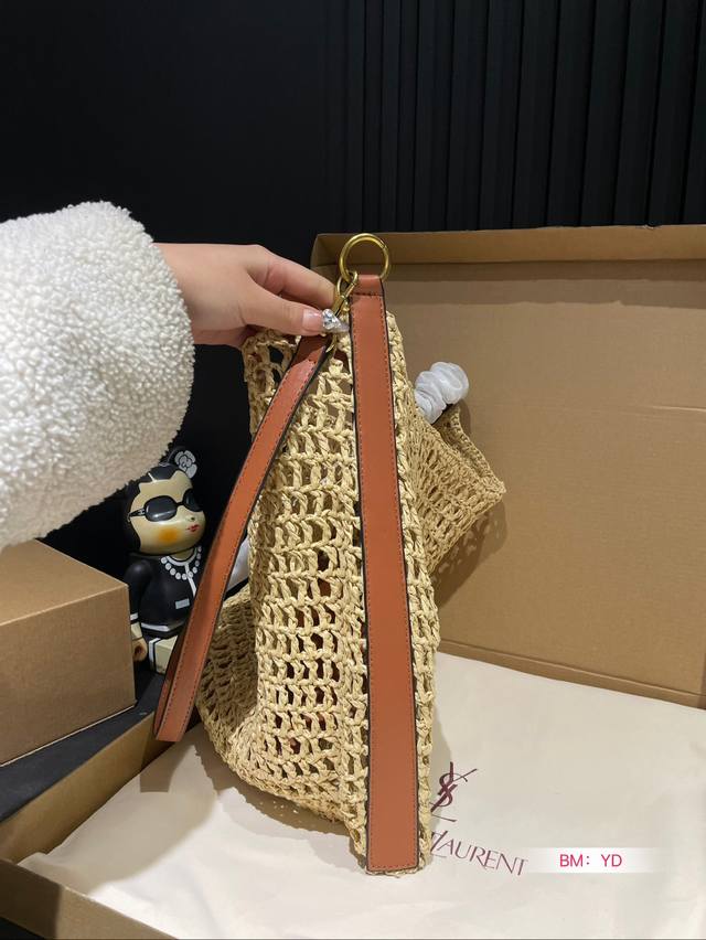 / 配盒 Ysl度假拉菲草托特 真的好想去度假 搜索编织 购物袋 尺寸:34*37