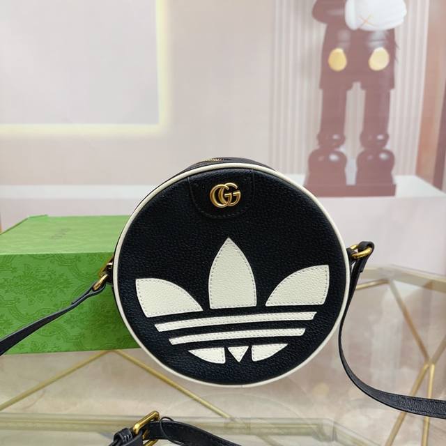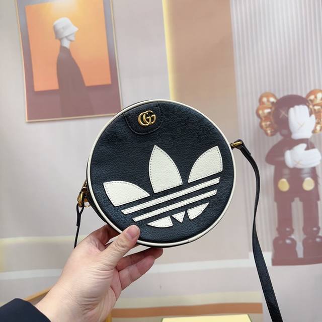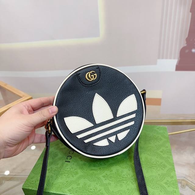 Gucci古驰新款adidas 阿迪达斯三叶草联名款圆饼包