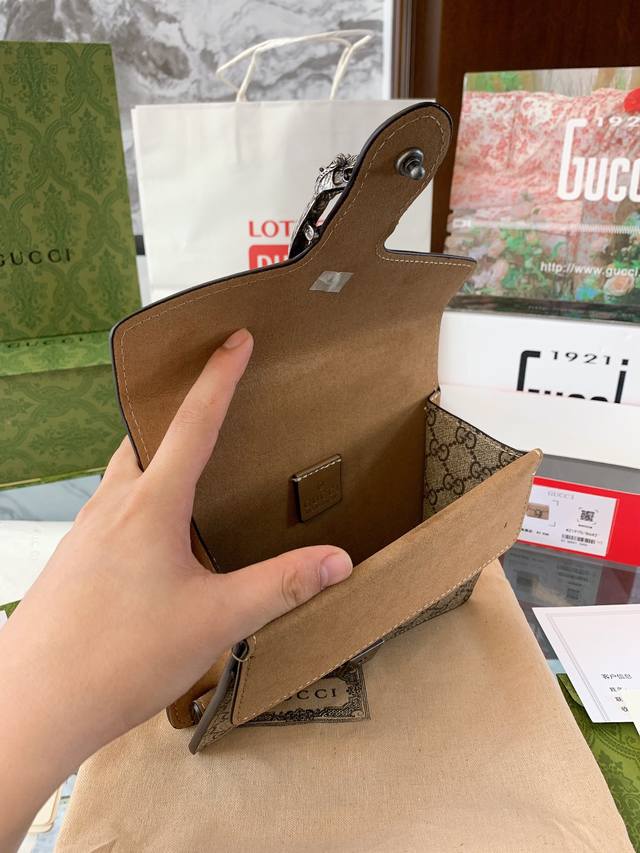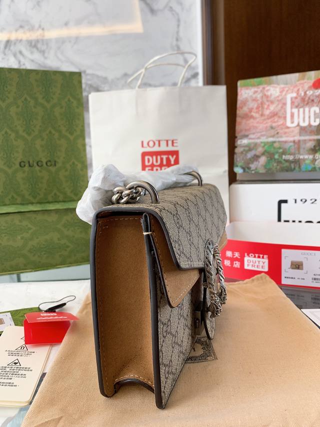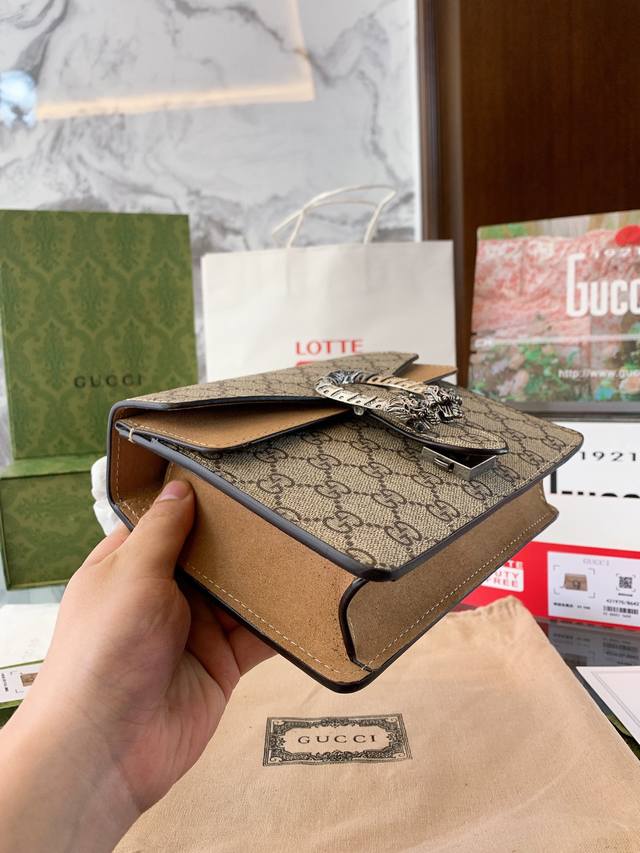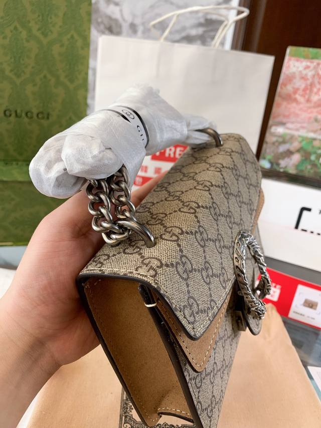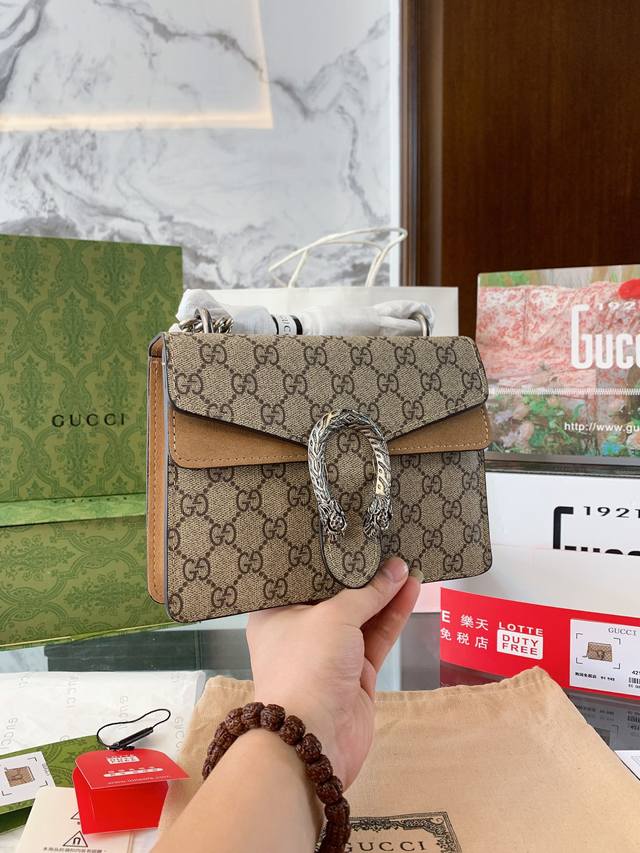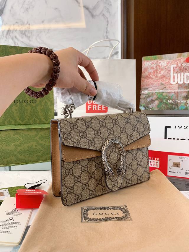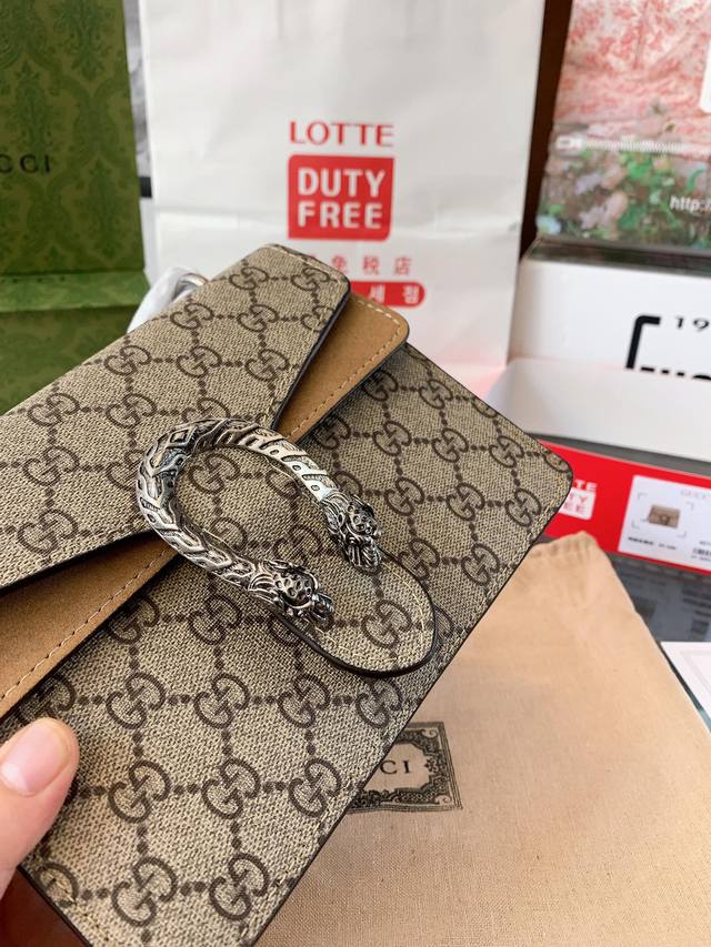 Gucci 全面升级专柜对版品质 经典dionysus酒神包 就是alessandro亲自设计的 名字来源于古希腊罗马神话中的酒神 经典pvc搭配进口真皮翻毛皮打造古奇复古风格 虽为手袋界的新秀 但即使是在it Bag层出不穷的今天 经典包款里也有它一席之地 销量王 今年一样火爆 配送折叠盒子包装 20Cm