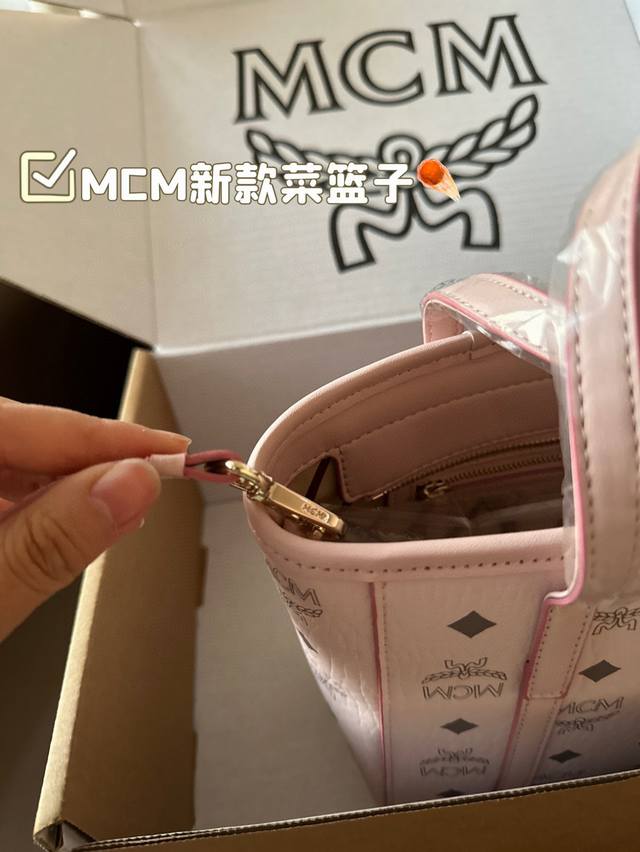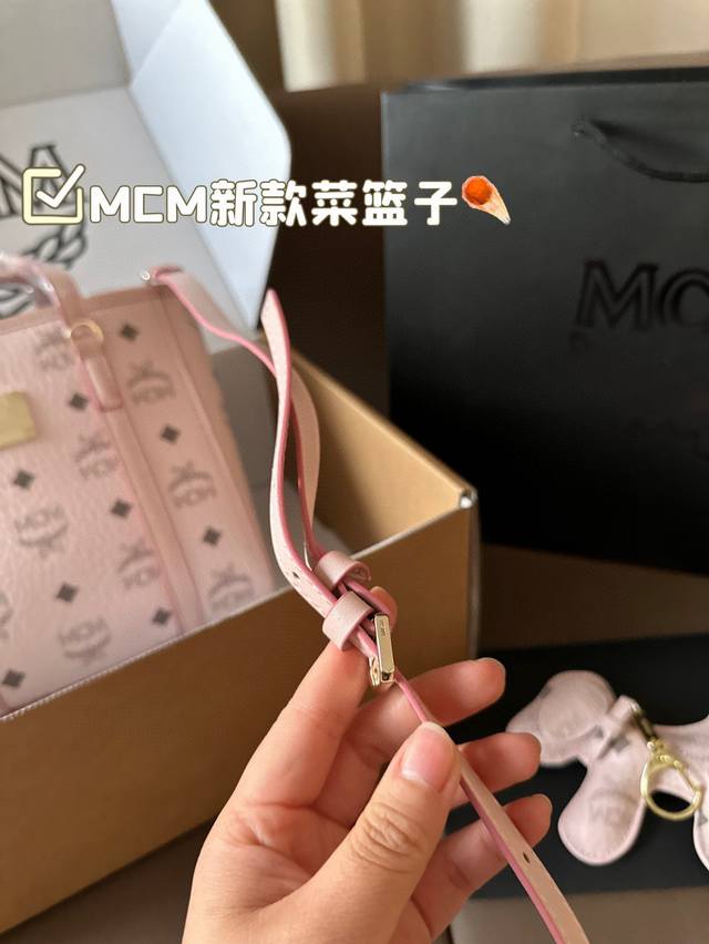 配礼盒 带挂件 升级版! Mcm 经典菜篮子 越看越可爱 经典配色 容量日常出门没毛病 手机 钥匙 钱包都能轻松放下...