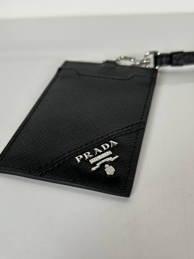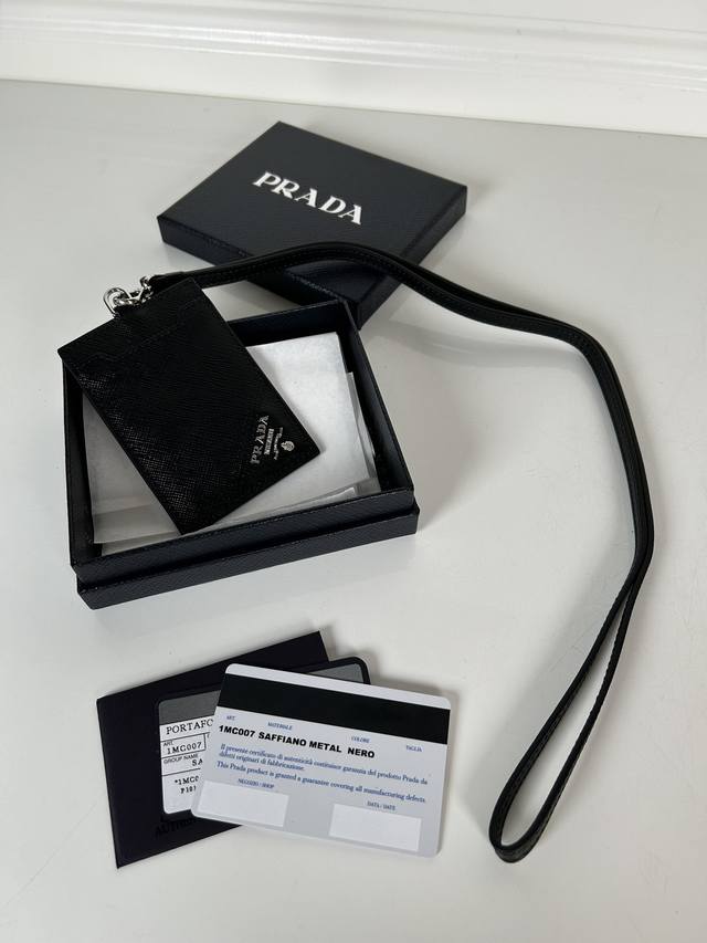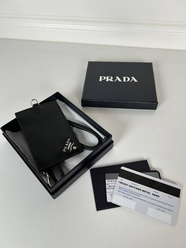 P家→挂脖款皮革证件夹,型号1Mc007,十字纹牛皮制作,尺寸10.5×7Cm,市面少有的工作卡牌,背面为透明镜窗,可拆卸式吊绳,拎包太麻烦,有了它,重要的卡片
