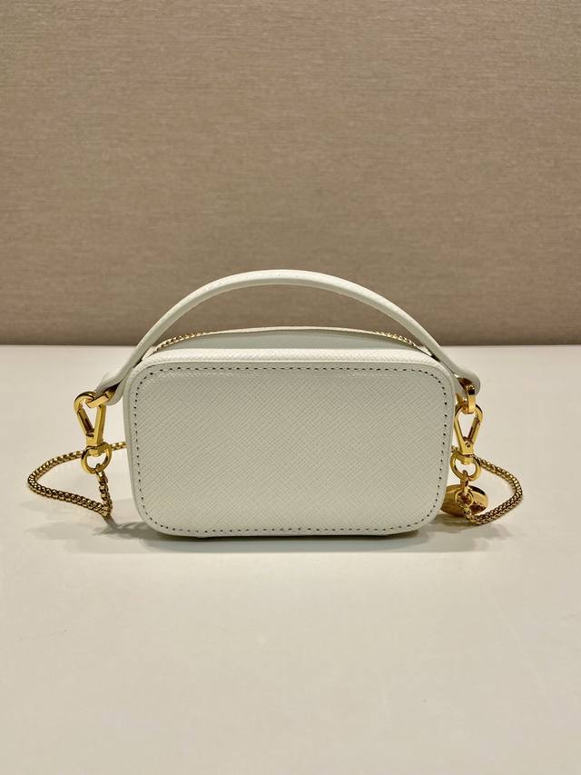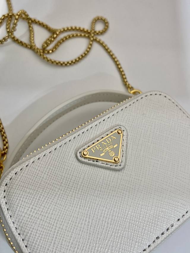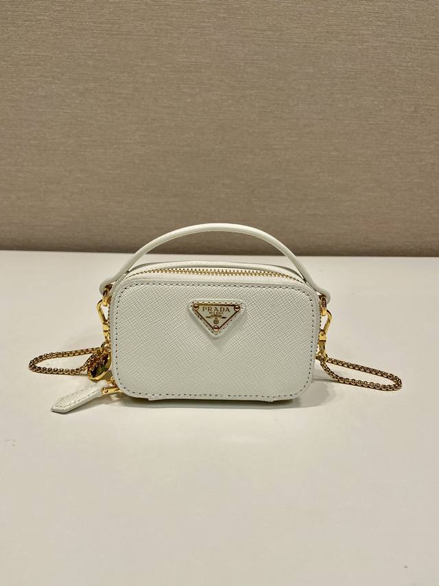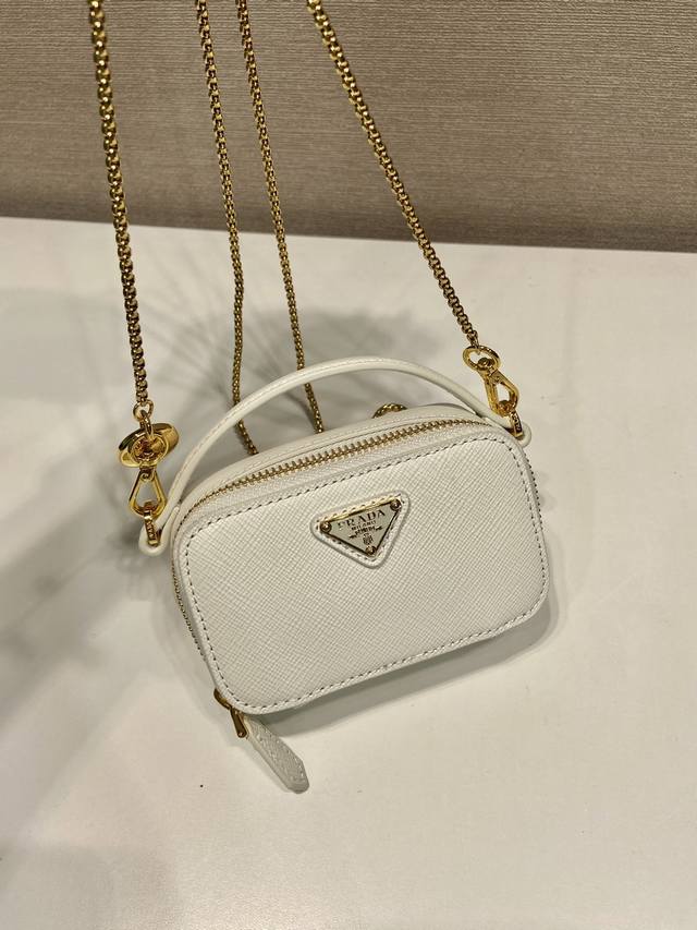 这款精致考究的十字纹牛皮迷你小包呈现出流畅和谐的线条。配有皮革提手和可拆卸链条肩带,饰有标志性的涂珐琅三角形金属徽标。太太可爱,值得拥有。赶紧入手吧长11X高6.5X底2.5Cm