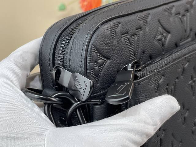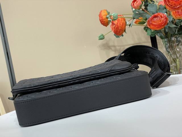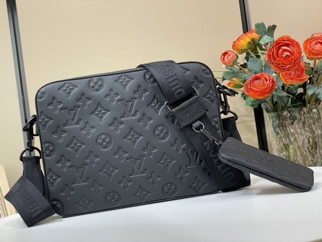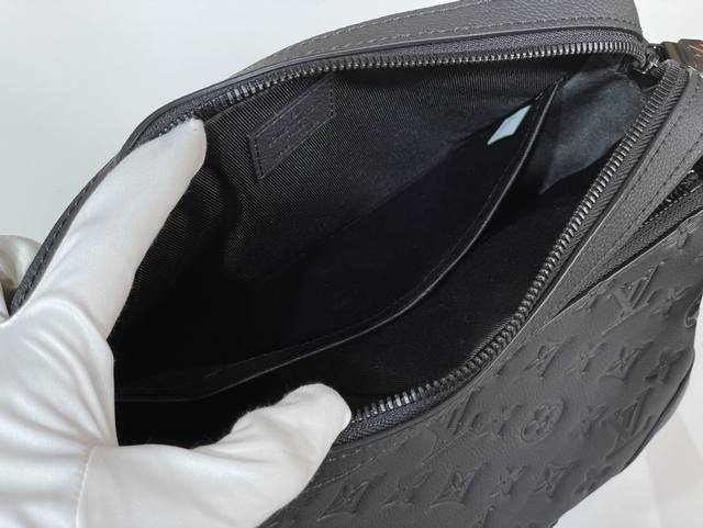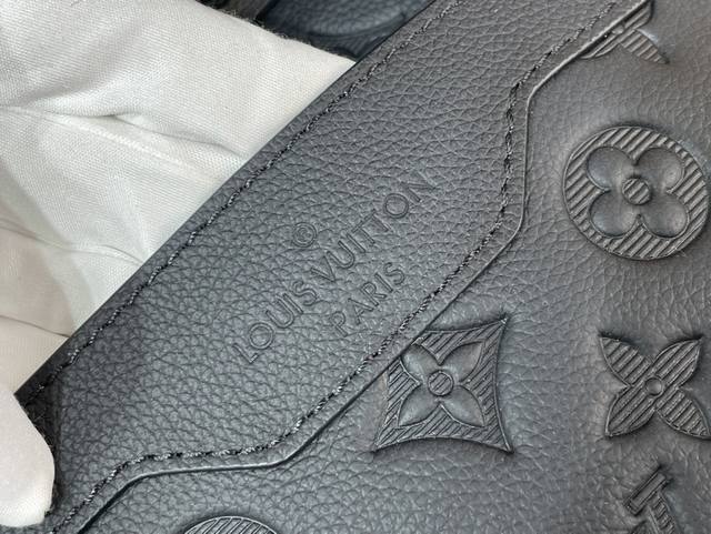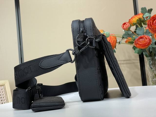 取材 Monogram 压纹牛皮革,拉链前袋和肩带处的小号零钱包均可拆卸,与主隔层共同丰富功能设计。可拆卸并调节的提花织物肩带标注品牌标识,成就舒适肩背和斜挎体验。