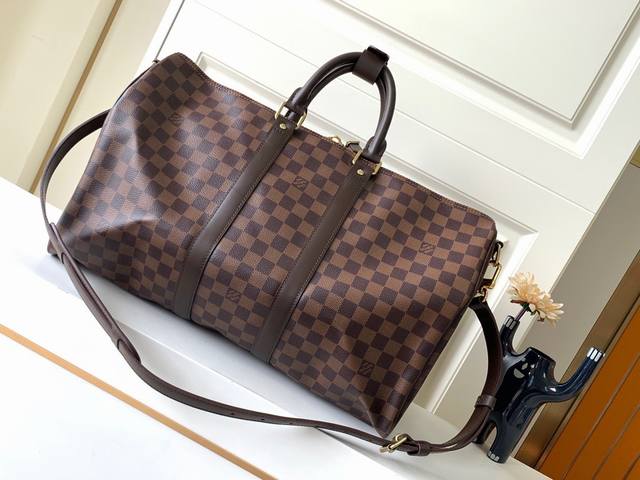 / 原单lv Keepall 45旅行袋 配肩带 型号:N41418 Keepall是lv旅行袋系列中的经典 中号keepall以monogram帆布为袋身,容量宽