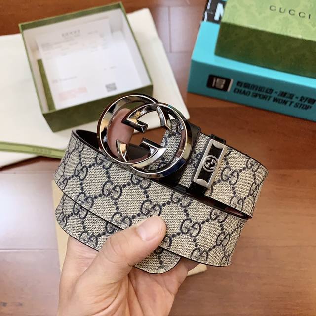 配图片正版包装,古奇专柜正品款,复古双g扣,经典原厂面料系列,原版标准3.8Cm宽度
