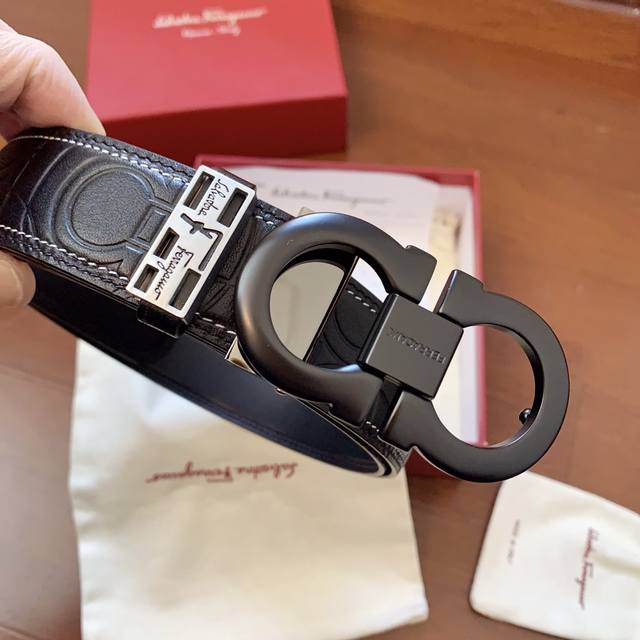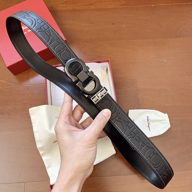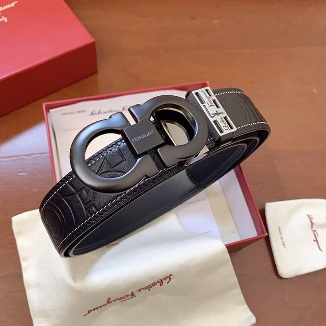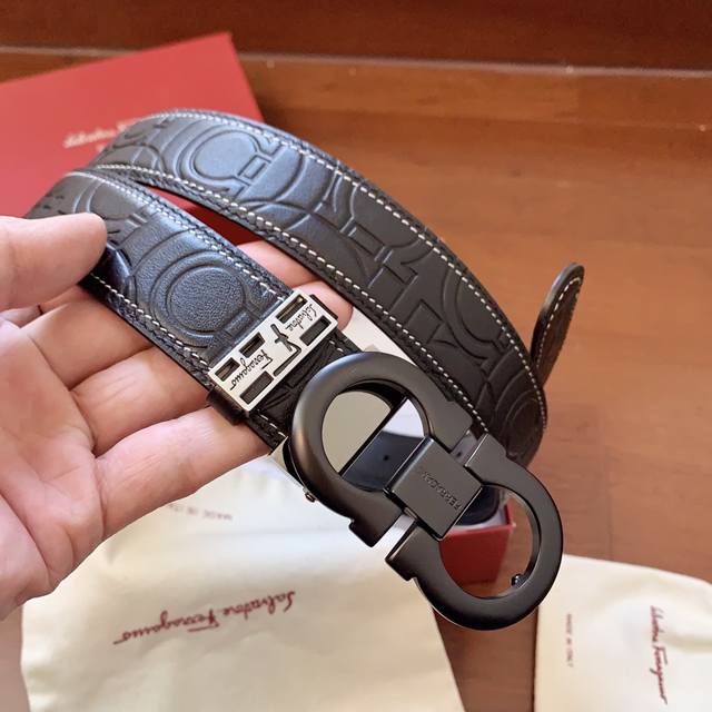 配正版包装,菲拉格慕原厂八字扣精品新款logo打磨制作,看图看细节,非常厚实饱满,正版同步, 皮纹清晰质感舒适 版型时尚高档 宽度3.4 Cm 高清实拍大图 ,