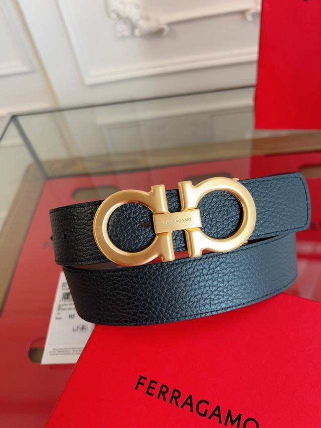 / 菲拉格慕 双面意大利进口头层荔枝纹牛皮,搭配真空电镀拉丝纯铜扣,官网新款,专柜有售,市场顶级品质,支持验货 配送全套专柜包装,宽度 3.5Cm