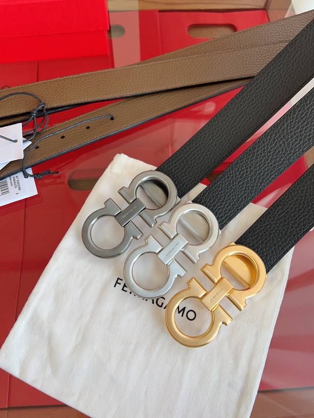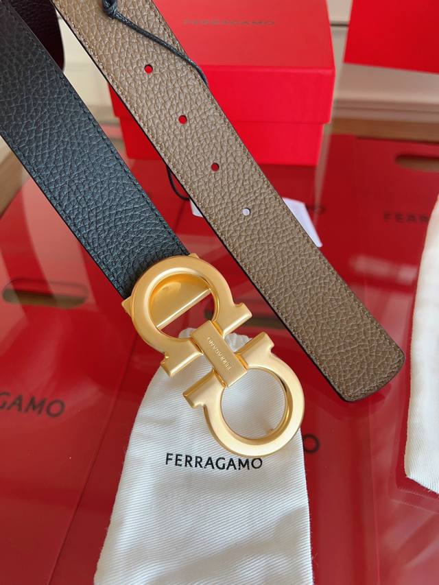 菲拉格慕 双面意大利进口头层荔枝纹牛皮,搭配真空电镀拉丝纯铜扣,官网新款,专柜有售,市场顶级品质,支持验货