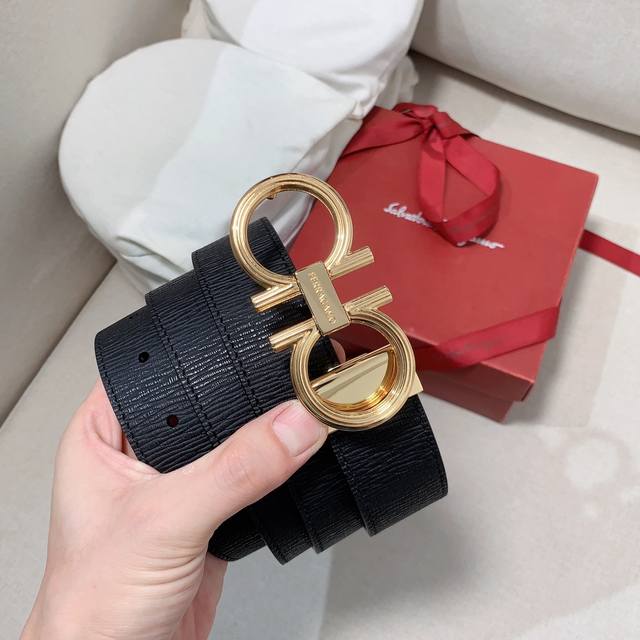 菲拉格慕 -双面意大利进口头层水波纹牛皮,搭配真空电镀亮面条纹纯铜扣,官网新款,专柜有售,市场顶级品质,支持验货 配送全套专柜包装,宽度 3.5Cm