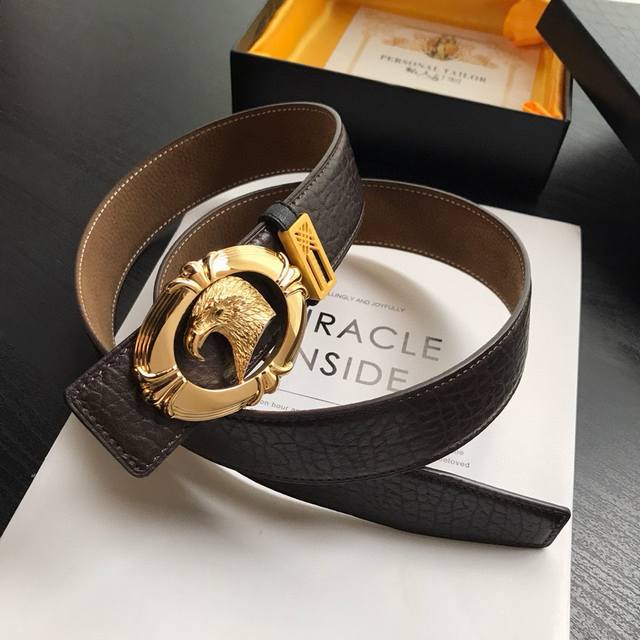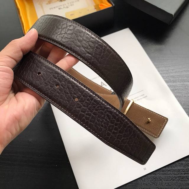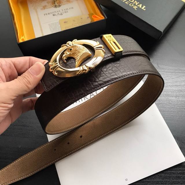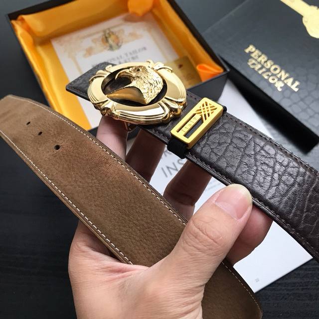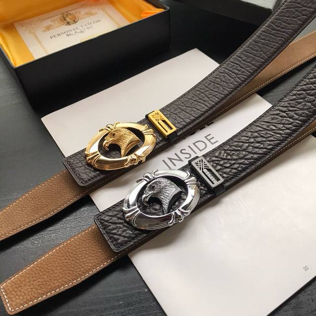 配正版包装,史蒂芬鹰头高端系列,皮版开模真正原产定制鹿茸皮配大象纹,意大利进口头层牛皮,皮质柔软手感没得挑,精品扣,正品开模复刻,好货拼质量,品质保真 制作工艺考究 媲美正品无压力 好货上手即知,宽度3.8 Cm 高清实拍大图