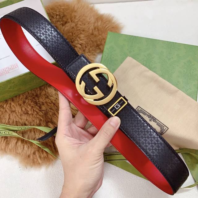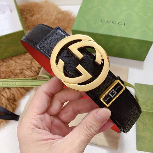 / 古奇新款系列,宽度3.8Cm,纯钢内穿扣配正版包装,五金精品打磨材质,高端品质定制特种皮,原单鹿皮纹,正版开模, 高清实拍大图 ,保质保量