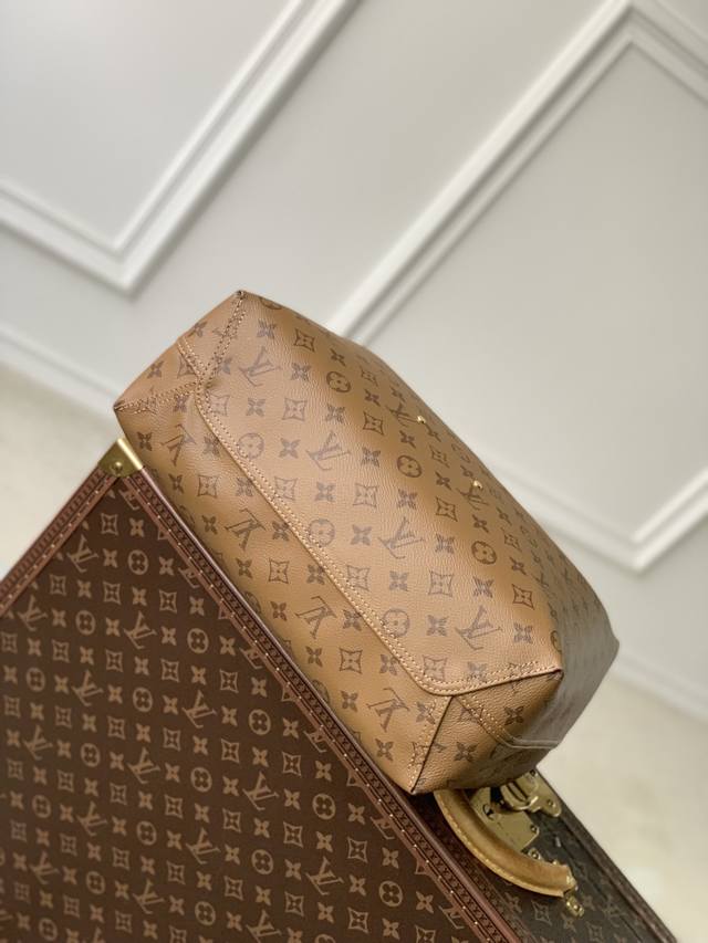 本款 Atlantis 大号手袋取材monogram 帆布,以新颖购物袋造型俘获视线,再借瞩目 Lv字母名牌点明品牌身份。拉链内袋有序收纳日常所需,可拆卸并调节的肩带实现斜挎体验。 34 X 34X 13.5厘米 长度x高x宽
