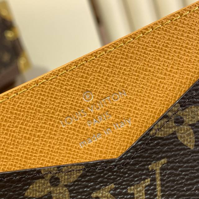 本款卡夹焕新原版 Kirigami Pochette 手拿包的信封式构型,为 Colormania 系列增添崭新创意。Monogram 帆布结合明丽皮革内衬和莹泽按扣,二合一隔层可拆卸后单独使用。
