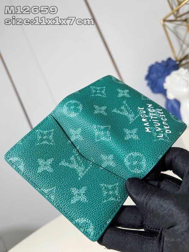 / 出厂价 顶级原单 M12659绿 本款口袋钱夹选用 Monogram Heritage 涂层帆布,其上融入 Damier 格纹的纵横纹理和 Marque L.V